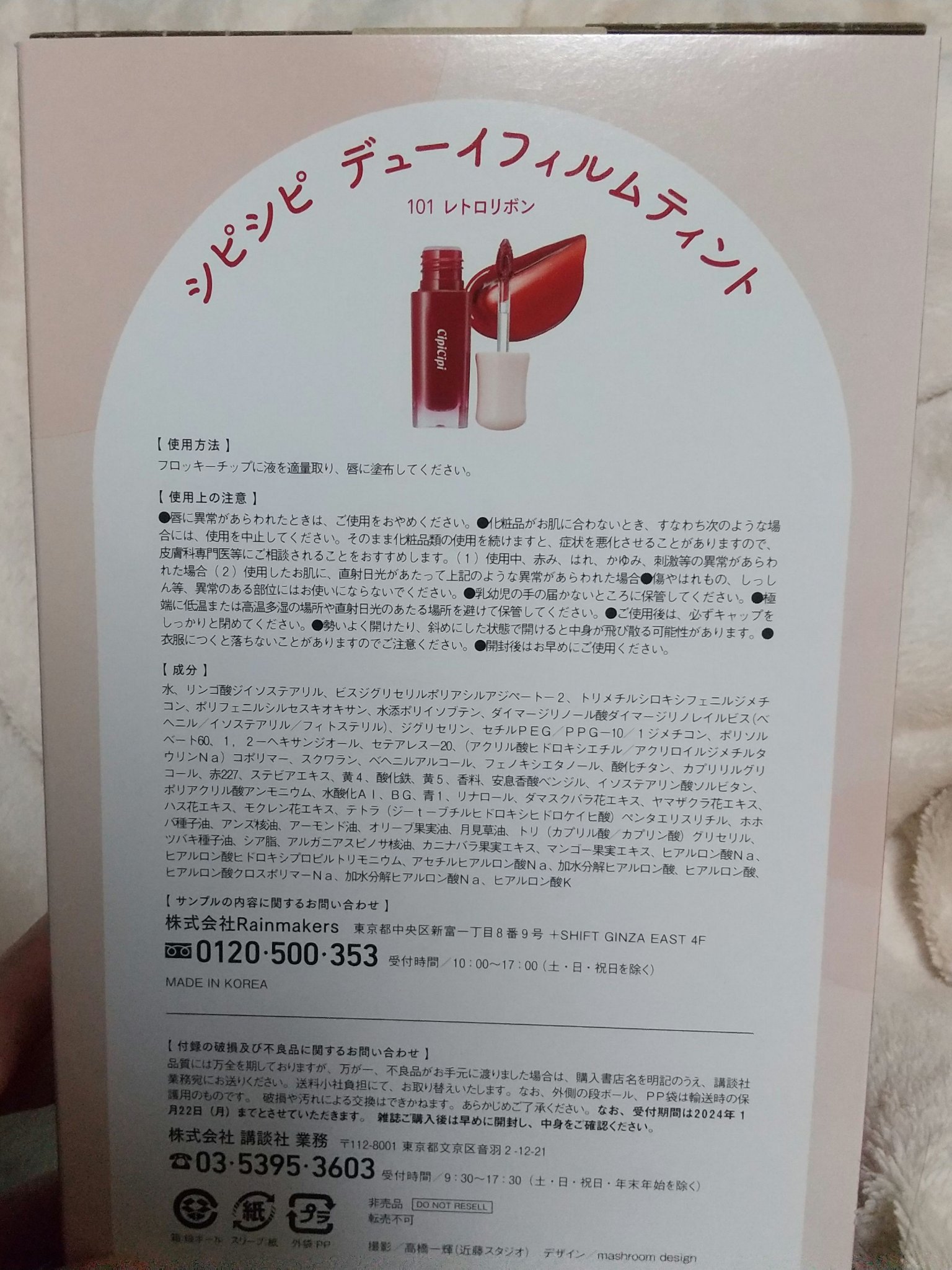 ✔️CipiCipiデューイフィルムティント101VOCE2024年1月号付録の限定カラー101レトロリボン🎀今、対象店舗で1300円以上CipiCipi商品を買うとプレゼントされます🎁色可愛くてお気に入りだけど限定だったからもう会えない😭っ...