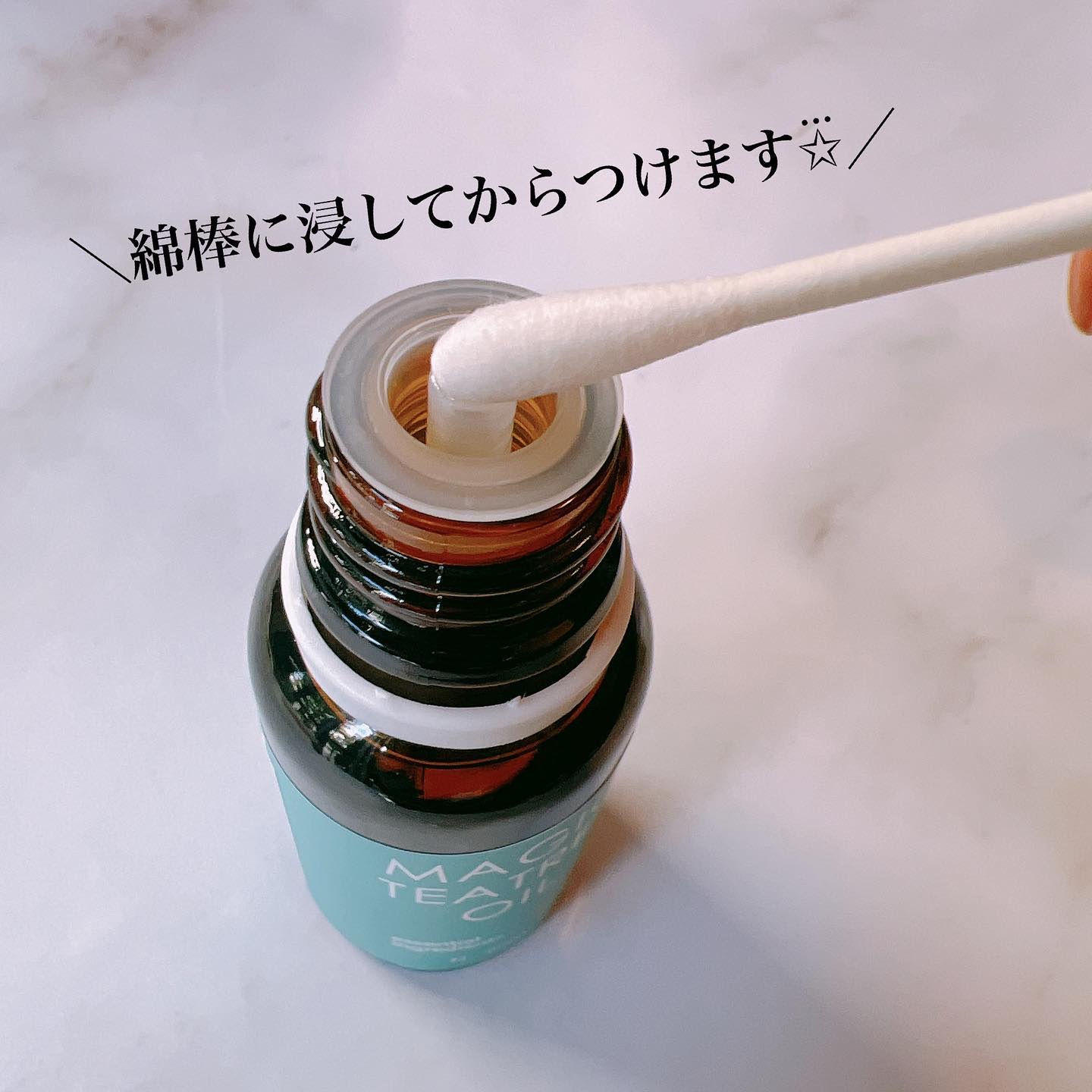 - マジックティーツリーオイルは、乾燥や皮脂による肌悩みをスポットケアし、整える商品です。ブラン代表の整肌成分である4‐テルピネオールで肌トラブルの原因の1つである皮脂を素早くケアします。 【このような方におススメ】 ✔乾燥による肌悩みが気になる方 ✔過度な皮脂と油分が気になる方 ✔べたつきのないスキンケアを探されている方 ✔肌荒れを防ぎたい方 ✔年齢性別肌タイプ関係なく使用できる商品を探されている方 【使用方法】 ①洗顔後、コットンに適量を取り、軽くふき取った後馴染ませます。 ②気になる部分の肌をきれいに洗顔後、トナー→クリームの順でお肌を整えます。 ③綿棒に1~2滴落とし、気になる部分に塗ります。 経過を見て朝晩のスキンケアの最後の段階に塗ることを繰り返します。