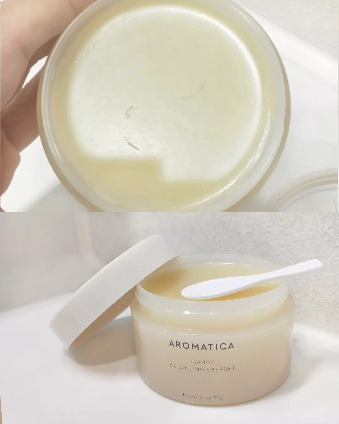 アロマティカAROMATICA🍊オレンジクレンジングシャーベット🍊過剰油分や皮脂、濃いメイクまでしっかりと落とすワンステップマルチシャーベットクレンザービタミンC、Aなどの有効成分をだっぷりと込んだオレンジオイルバームのような質感で、とろっと...