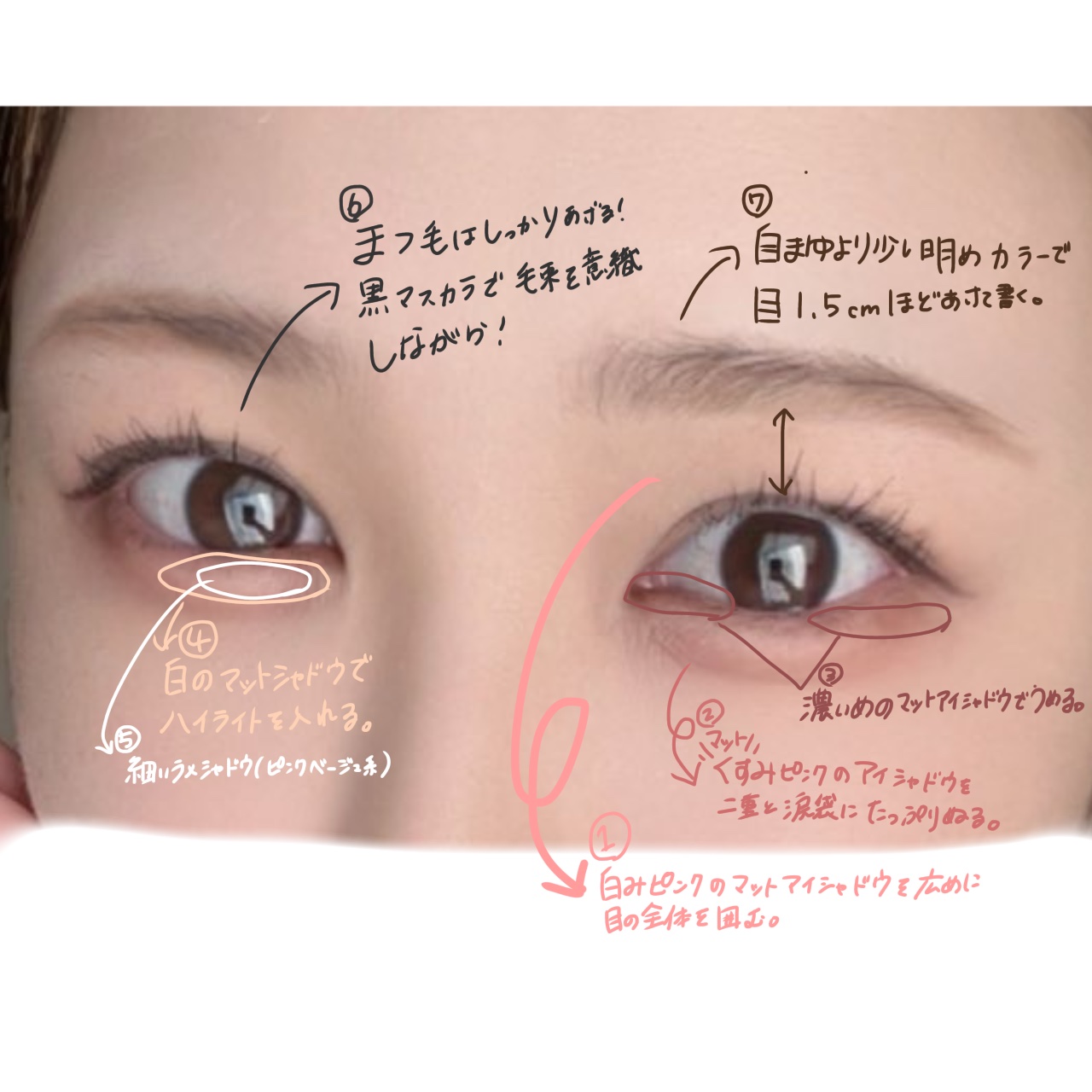 メインはLAKAのアイシャドウで、全体にマットシャドウ、上まぶた中央にラメシャドウを使いました♡ 涙袋には二重ライナーで引いたあとマットシャドウを極細の筆にとって重ねています✨ オーバーラインはCANMAKEのペンシルで書いた後にこれもマットシャドウで上から重ねてます! 下まつげは安定のセザンヌ極細アイライナーで書いて、目の重心を下げてます👀 ハイライトは写真には載っていませんがフラワーノーズの天使シリーズのハイライト(パラダイスロスト)を使用しています♡ リップはこの前も紹介したViseeです!