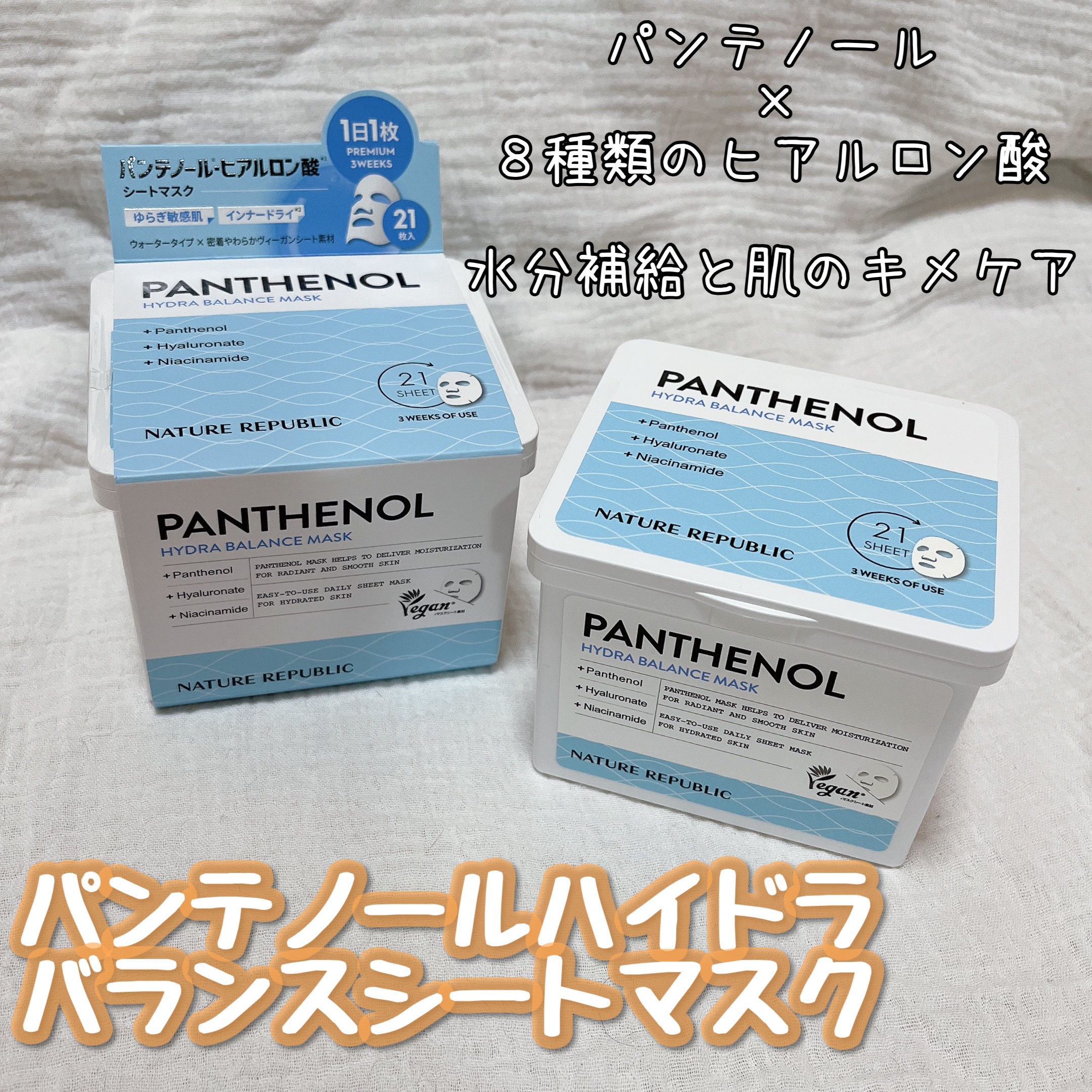 ネイチャーリパブリックのパンテノールハイドラバランスシートマスク✨✨ これが思いの外とっても良い!! ✔︎パンテノール…保湿作用、抗炎作用、修復促進作用がある ✔︎ヒアルロン酸…水分を与えてハリや弾力を維持 20分じっくり使った日の翌日の朝…『あれ?なんか肌がふっくらしてるな??毛穴もいつもより目立ってない👀』と