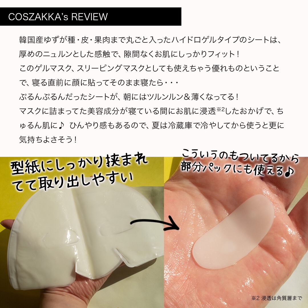 | ゲルタイプのシートがぴたっと肌に密着。しっとりべたつかない使い心地でとても良かった! そして何より優しいユズの香りが大好き | 詳細を見る | |