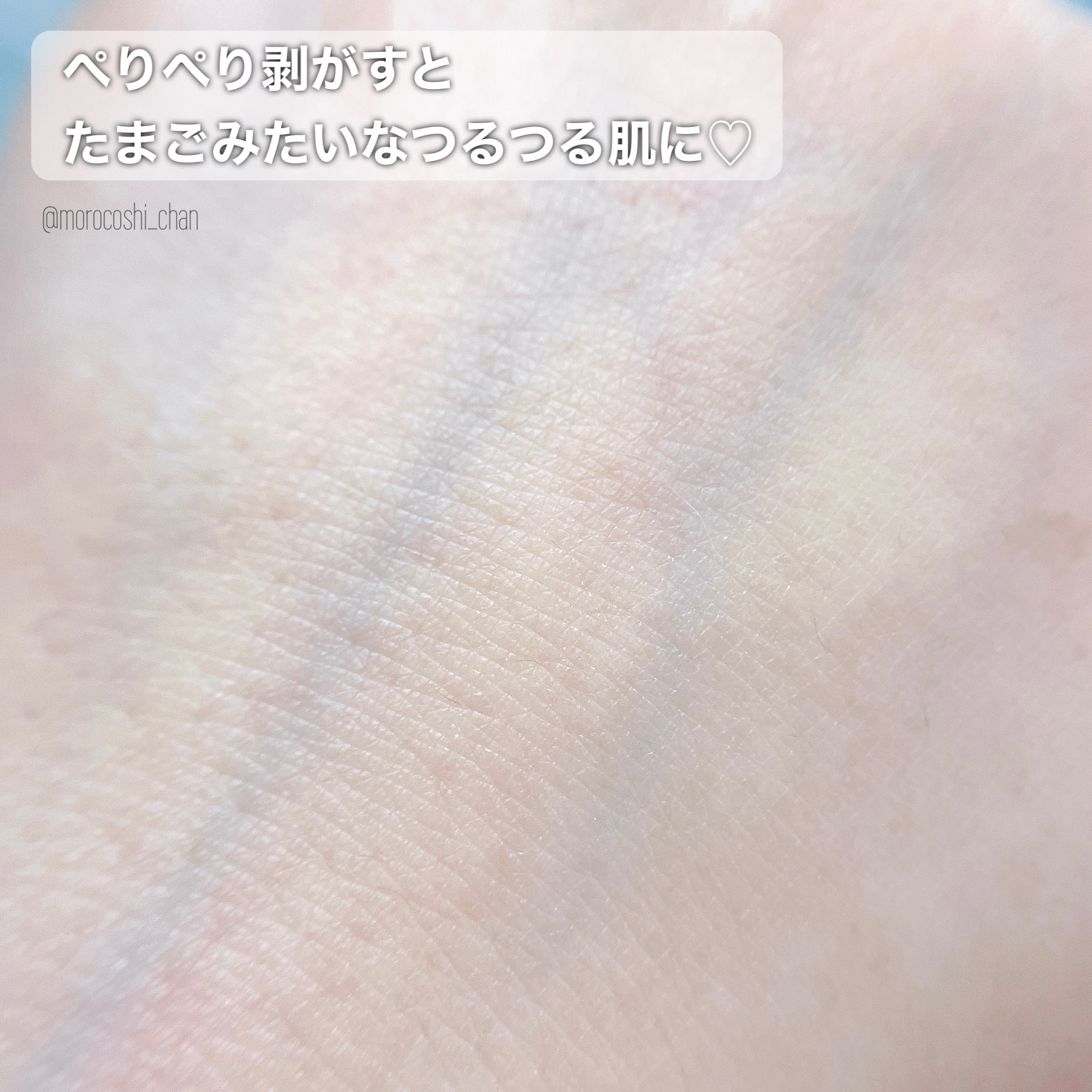 テクスチャーはトロトロしていて伸びが良いよ。 時間が経つにつれてマスクが固まってきて、まるで石化した気分に🤣笑 剥がすときは基本綺麗に剥がれるけど、髪の毛に付くと大変かも。 使用後の肌はワントーンアップした気がしたし、ザラつきもなくなったような🥰