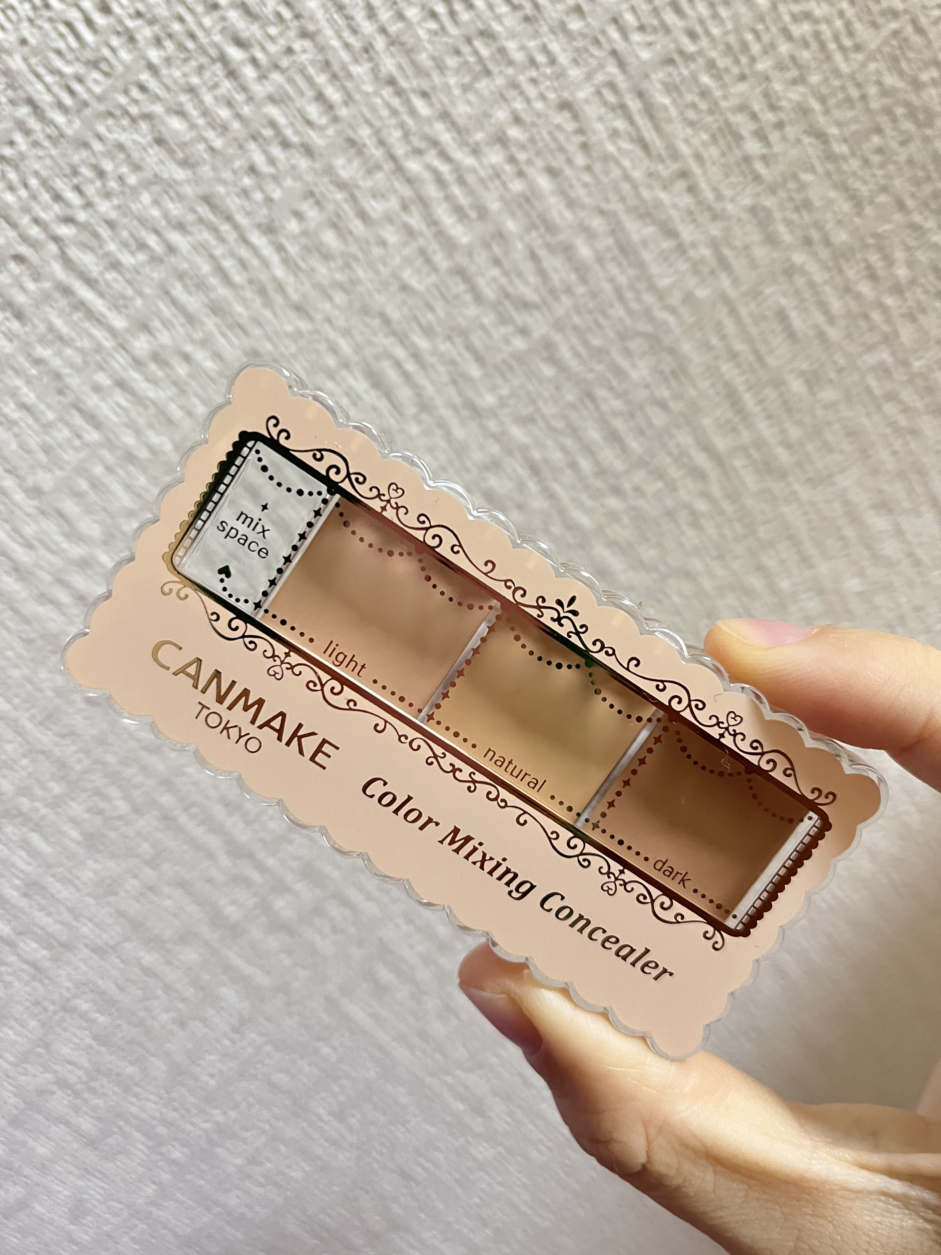 3色入りなので悩み別に使い分けができます☺️ 手頃なお値段なのに鏡、ミックススペース、ブラシがついています𖧷 カバー力はそこそこあります🙆♀️ 固すぎず使いやすいですが、若干乾燥で粉吹いてくるのでメイク前の保湿はしっかりする必要があります