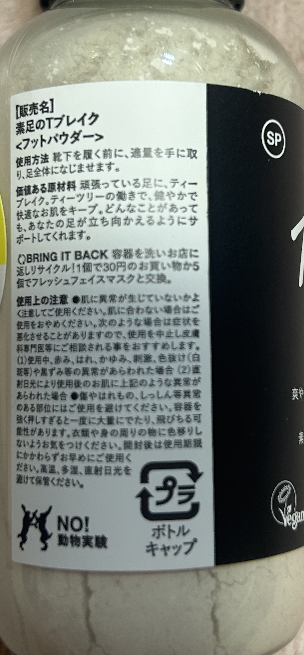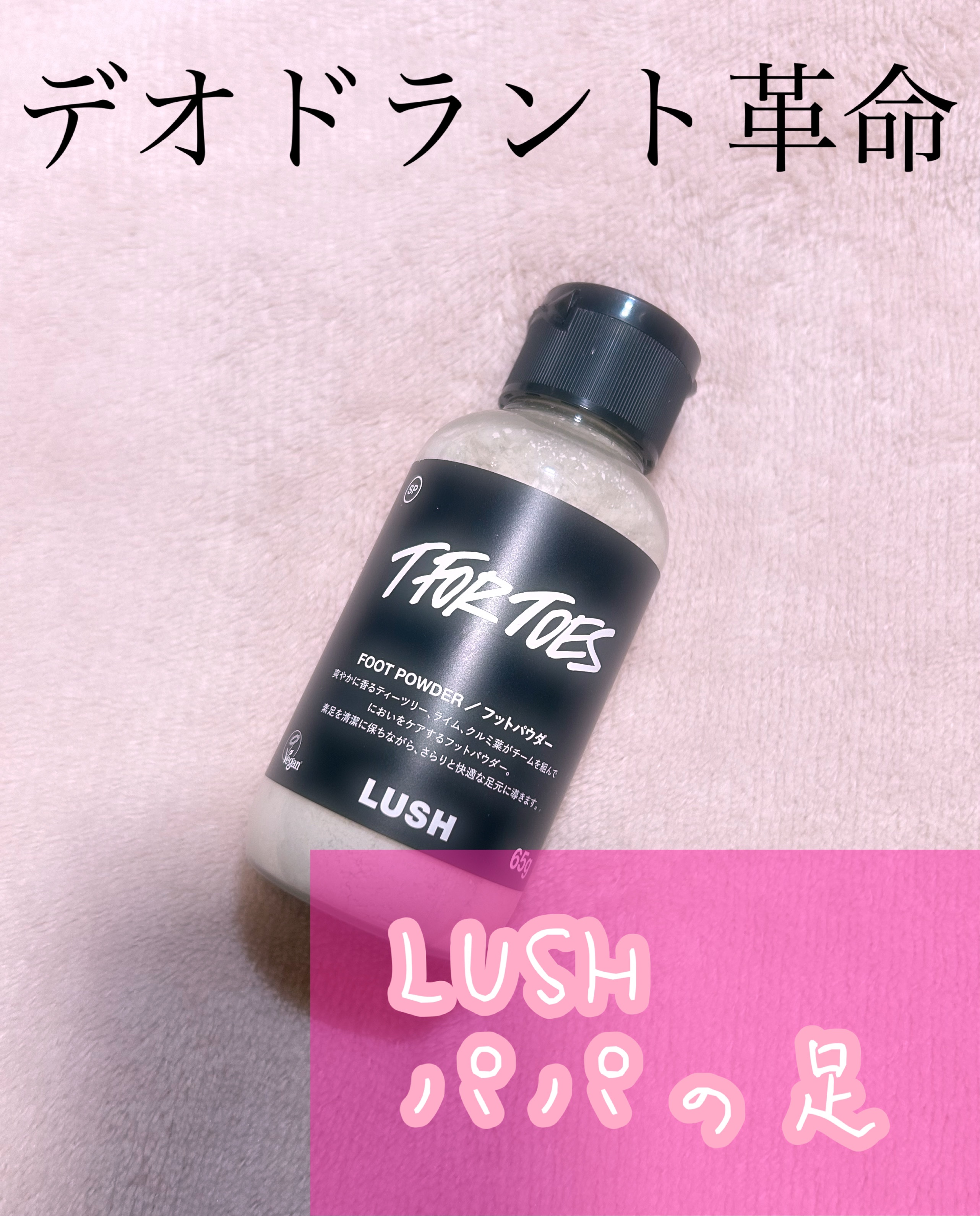 LUSH 素足のTブレイク(パパの足)です パパの足で有名なLUSHのフットパウダー! ずっと気になっていてようやく手に入れました☺️ 今まではデオナチュレ一筋でしたが、個人的にはこちらのほうがよかったです! まったくの無臭になれます✨ これにはびっくりでした😳 あとは蒸れにくい感じもします👏🏻 靴の中に適量入れておくとにおい防止にもなりかなり良いですよ~😊 これからのブーツを履く季節におすすめです🙆🏻‍♀️ なかなか量も減らないのでコスパもよさそう◎