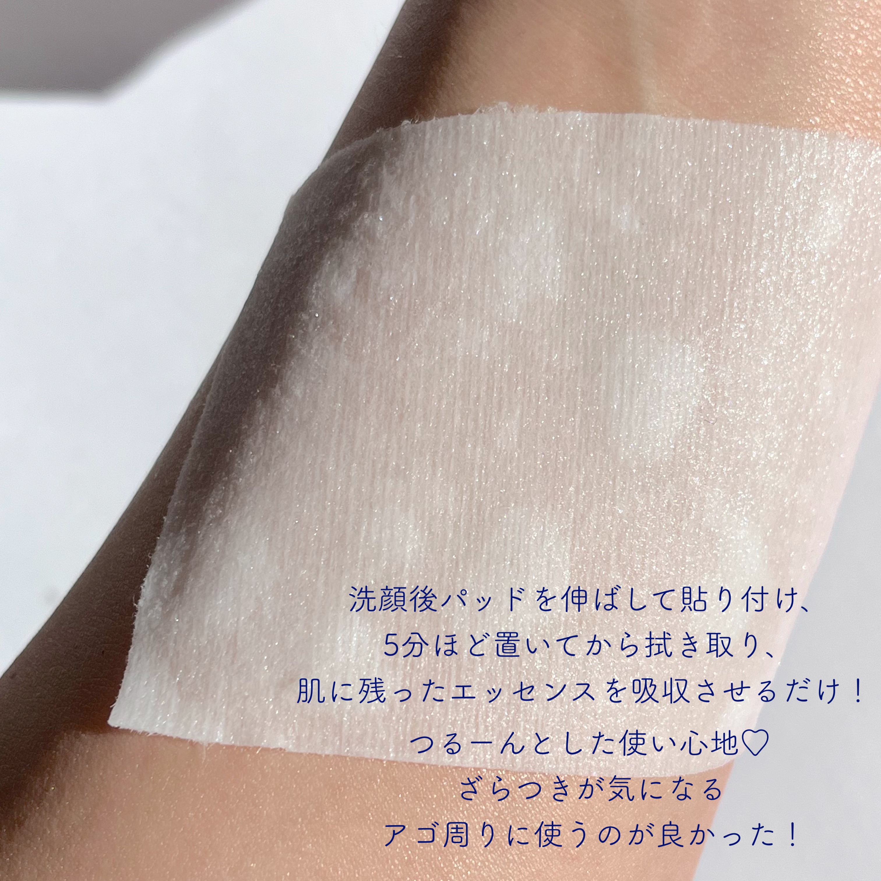 使用感は結構さっぱりする感じなので乾燥肌の方は使用後の保湿をしっかり目にしたほうがよさそう◎ 個包装なので持ち運びにも便利です❤︎ 肌脂質成分(整肌成分)を配合しニキビを防いで肌を健やかに保ってくれる◎ お肌に残ったエッセンスを軽く叩いてお肌に馴染ませます◎