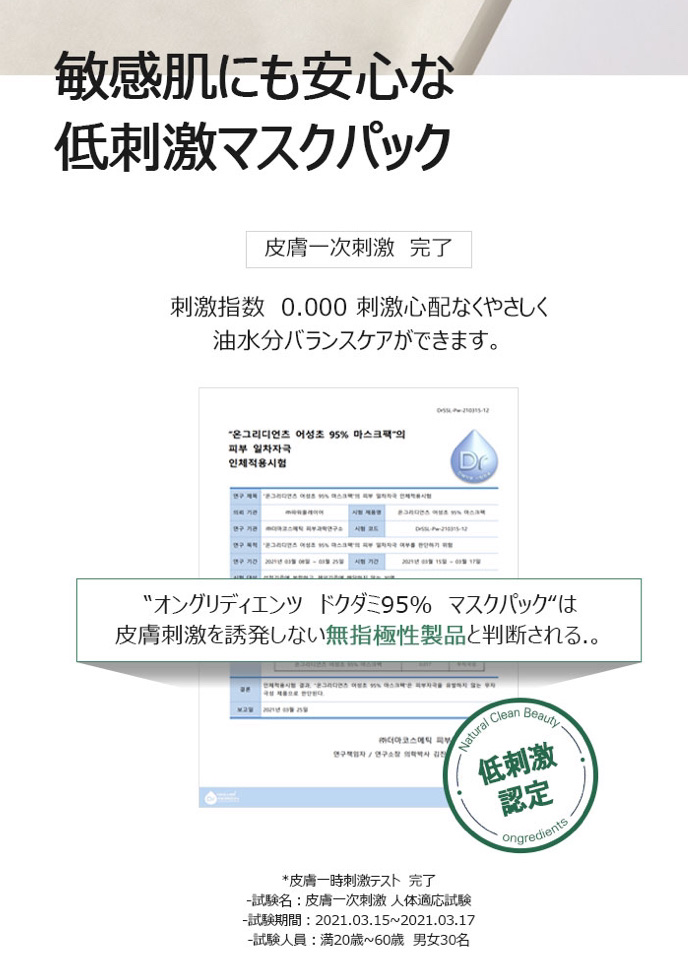 商品詳細情報Ongredients Houttuynia Cordata 95% Mask