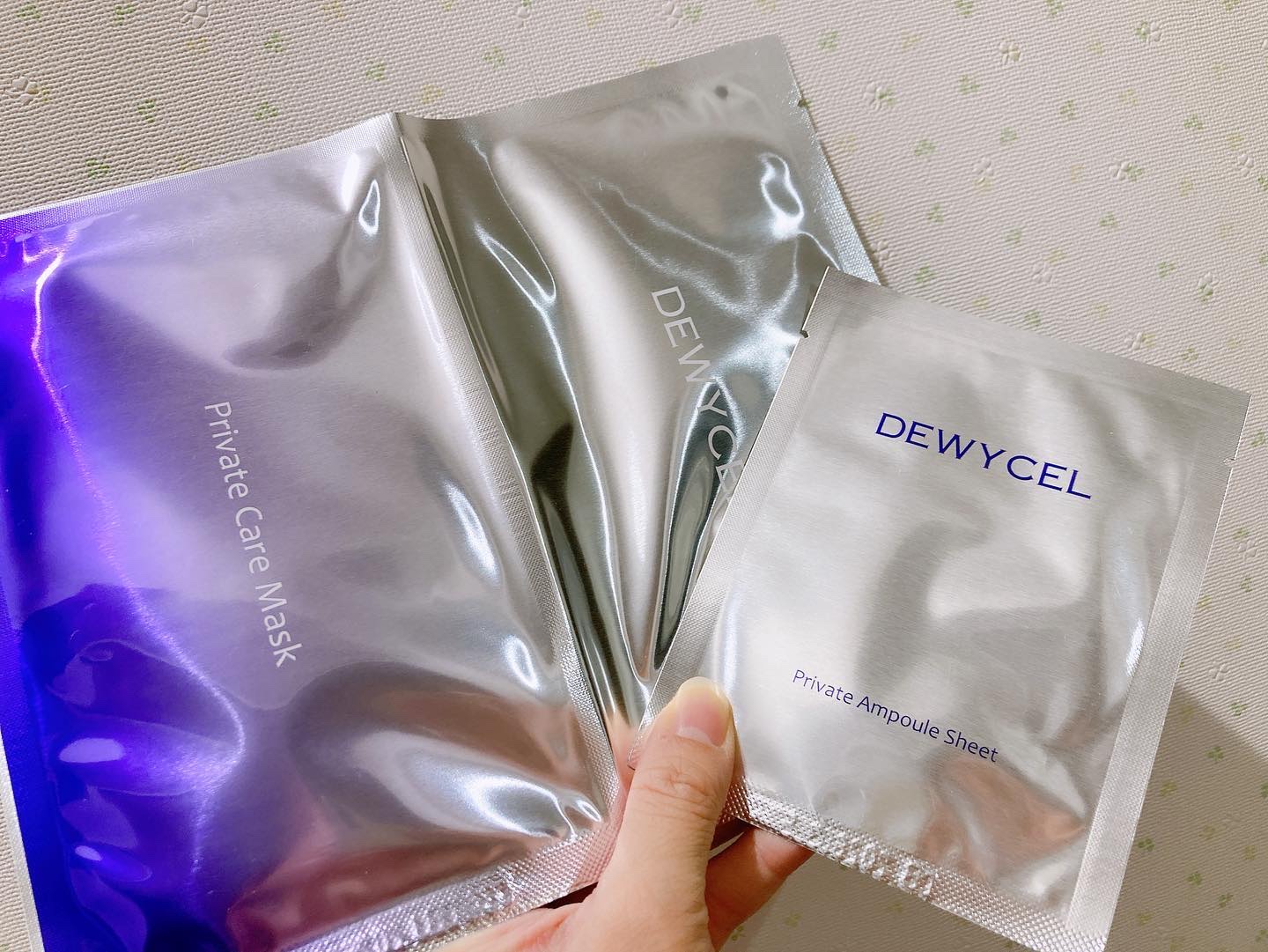 DEWYCEL様よりプライベートケアマスクご提供いただきました💜(使い方)アンプルシートの両面を使い角質をケアしたあと上下で分かれたマスクを貼ります🫧上部はハリ+美白🤍下部は引き上げ+ハリ✨このマスクを使った後は朝まで保湿感をキープできます😌...