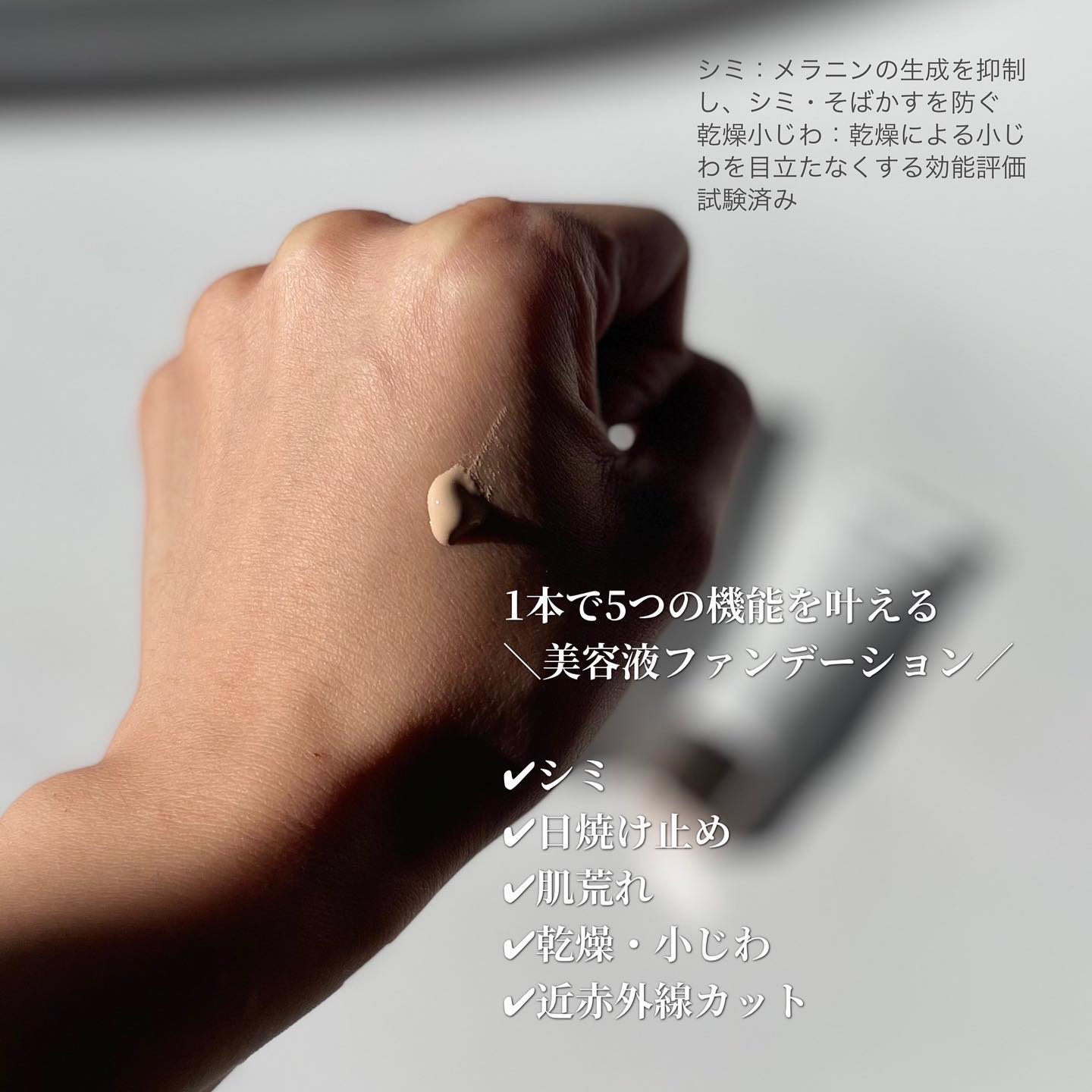 シワ改善と美白ケアを同時に叶える、美容液ファンデーションです🙋💕 美容液成分が62%で、メイクしながらスキンケアが叶うそう🩷 メイクをしている間も、シワ改善・美白ケアが出来るのが、とても魅力的だと思いました😌❤️