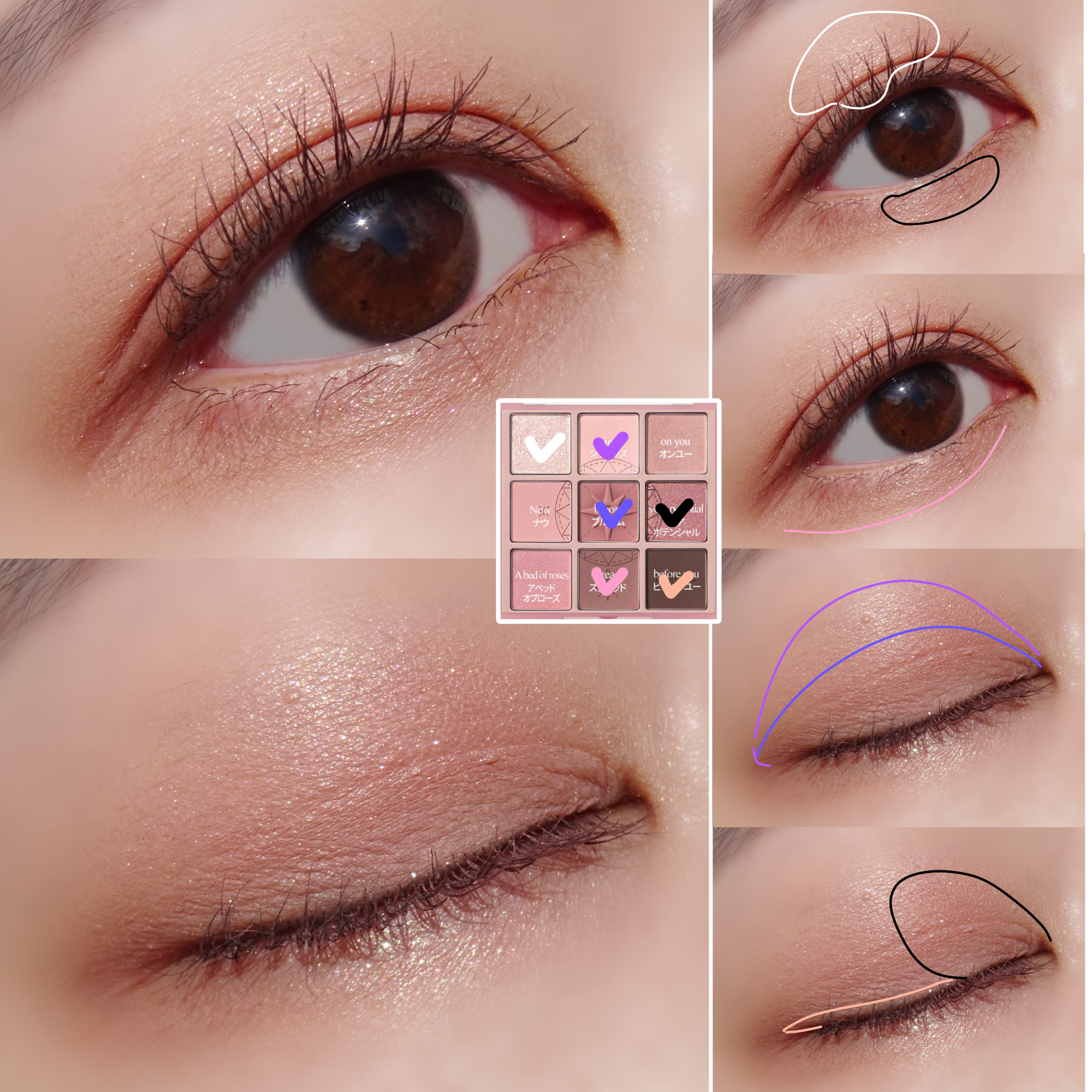 シャドーカスタマイズ のテディは、赤みのあるブラウンなので肌に馴染みます💕 赤ピンクを全体的に薄くぬるとまぶたが透けているようなうるうる目に🥺 エチュードのPK006の青ラメも、透明感を引き出してくれています…💘 UZUのホワイトアイライナーを使いたかっただけなので… 完全にステイホーム向けメイクです💦 私が普段、このメイクでお出かけしたら確実に注目されますね…😓