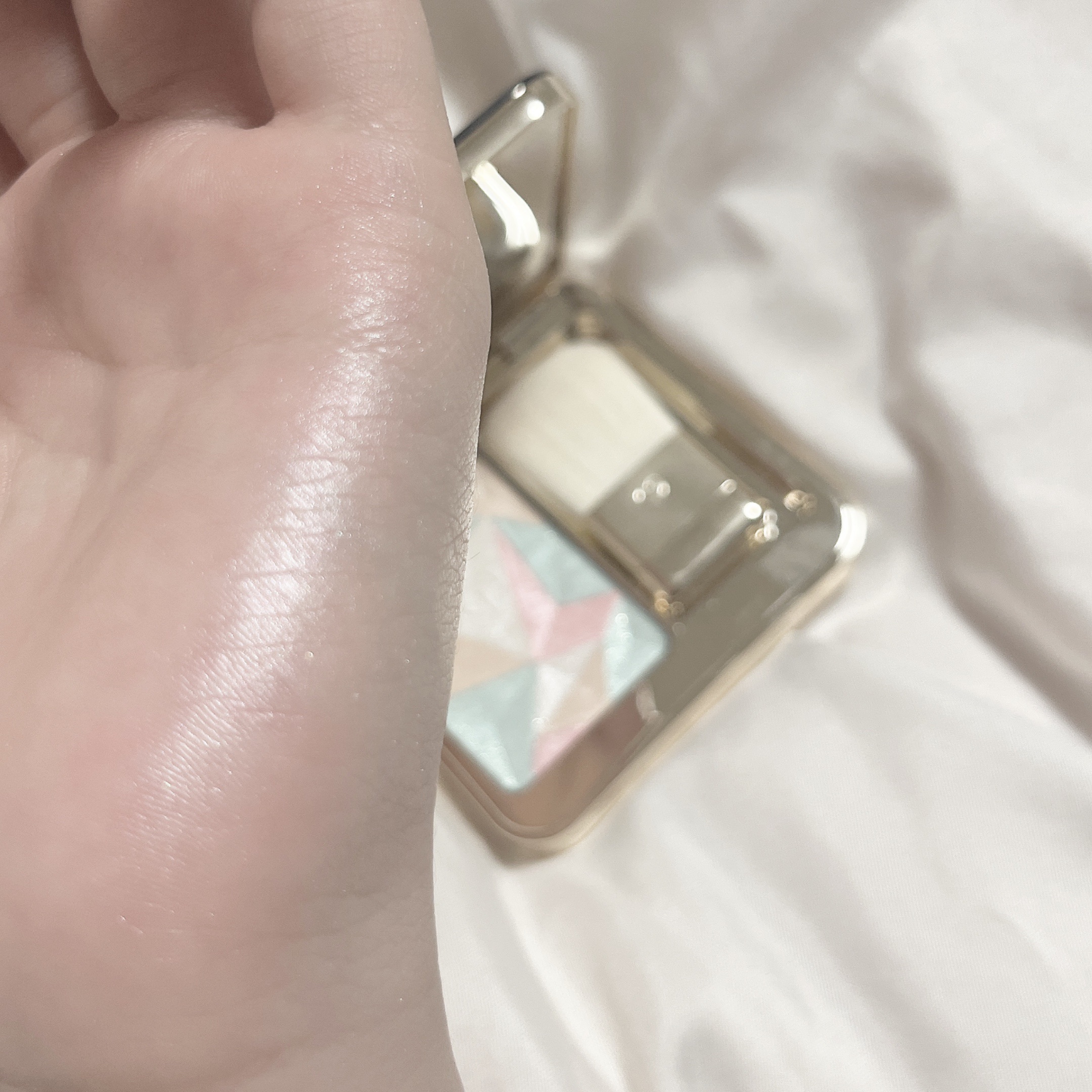 色味ベージュに寄ったホワイトって感じです! キラキラがはっきりしている分、鼻筋に乗せると鼻が高く見えたりハイライト効果はしっかり得られます! 粉なのにしっとりしていて頬なども乾燥しづらいです🙈💕