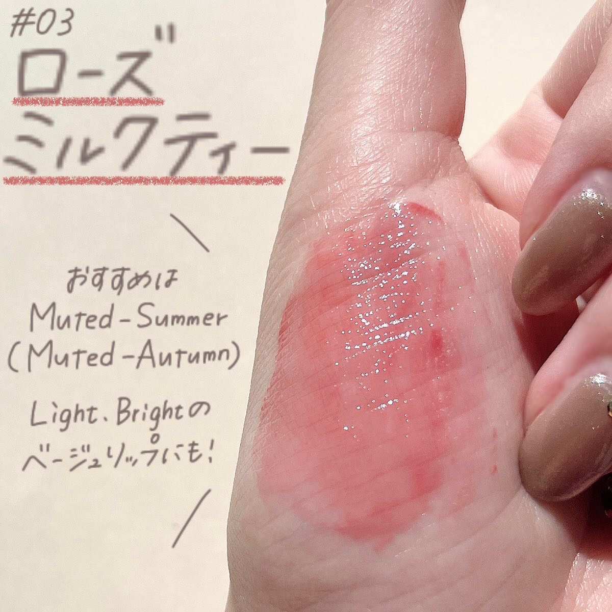 これ、インスタの広告で見かけて一目惚れして秒で買った🥺! まるで名刺みたいなリップグロス。 これ本当にうっすいんですよ!! リップ持ってるのうっかり忘れるくらい ポーチに入れても隙間にスッと入る。 なので持ち運びには最高🥹 なんならずぼらな私は ポッケに入れたくなる(一応我慢してる) 116は明るくやわらかさのあるピンク。 ほんのり青み寄りでブライトサマー、 ブライトスプリングには使いやすい◎ 118は青みのレッド。 こっちも全く重さはない まろやかさのある赤なので、 ブライトサマー、クールサマー クリアウィンターの軽めの赤としておすすめ♡ 色持ちは特別良い!って訳ではない。 ただ、うるみ感が残るので 潤い感のある唇に見えるのと 汚く落ちないので使いやすいです🙆♀️