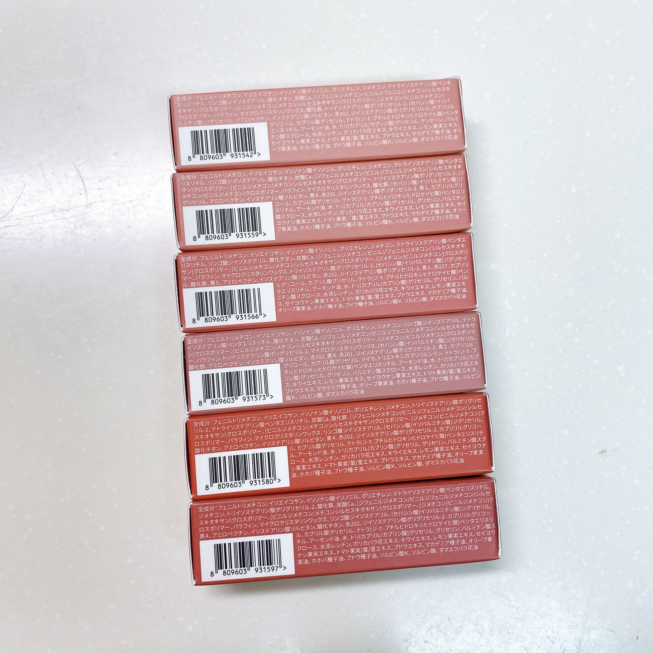 リップは01 Peach Burnと02 Sand Coralを。 01は思ったより蛍光?2のほうが良いねと思った。 手に塗るとあまりかわらない見た目だけど、唇に塗ると変わる。 サラサラしてて塗りやすい。 香りなしと最近知ったので買いを決めた。 プロポリスリキッドリップバーム 公式の通りサラサラしてる。ペタペタとかもったり感無い。