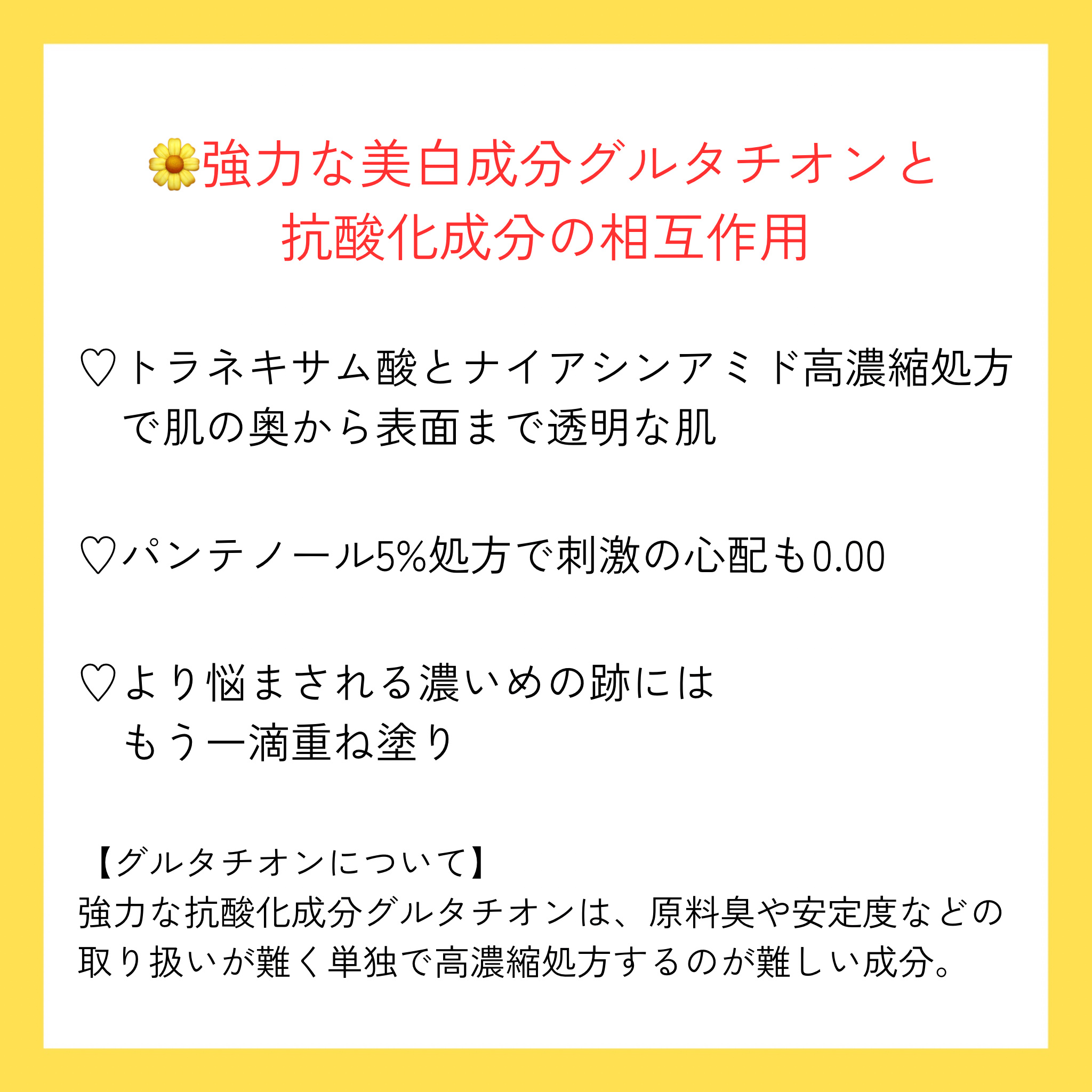 ニキビや日焼け跡など気になる痕跡を 白玉点滴の成分として有名なグルタチオンを配合した美容液(ृ˙꒳˙ ृ)ु੭ु⁾⁾ テクスチャはトロッとした感じで色は乳白色で美容液なに珍しい〜 保湿力も結構高いので 塗った後からモチっとします🫧🩷