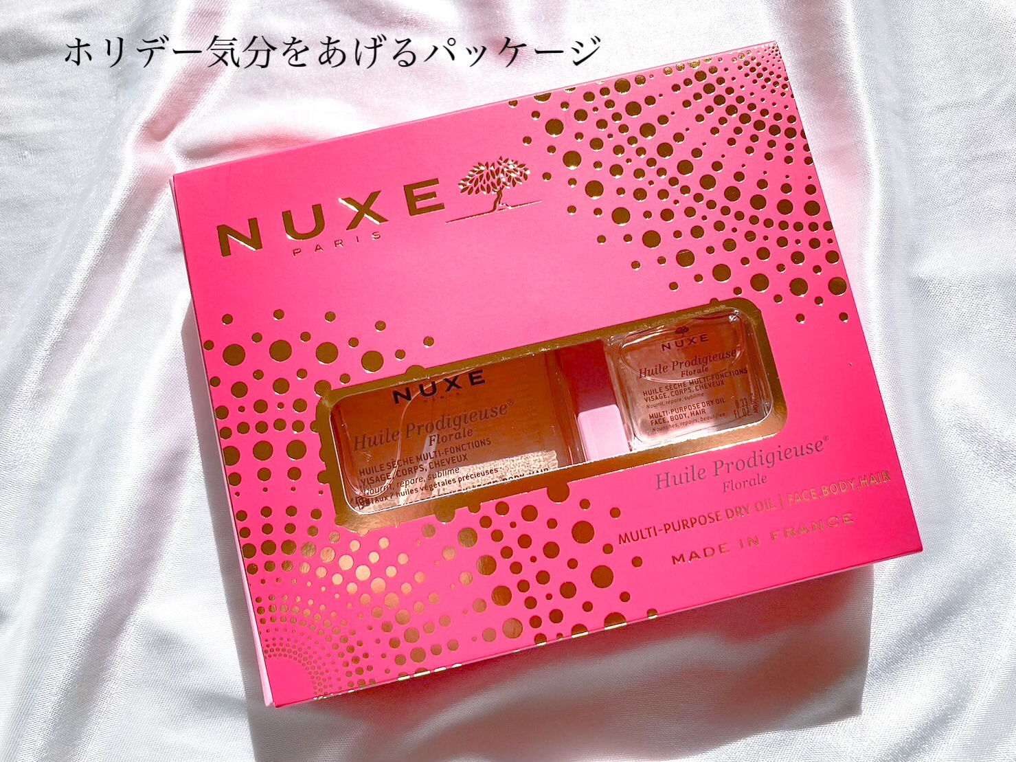 NUXEの限定春コフレ🌸▶︎ニュクス¥3,960(税込)大人気のプロディジューフローラルオイル(50mL)にプロディジューフローラルゴールドオイル(10mL・ミニサイズ)がついた春のスペシャルセットが数量限定で新登場✨1本で顔・体・...
