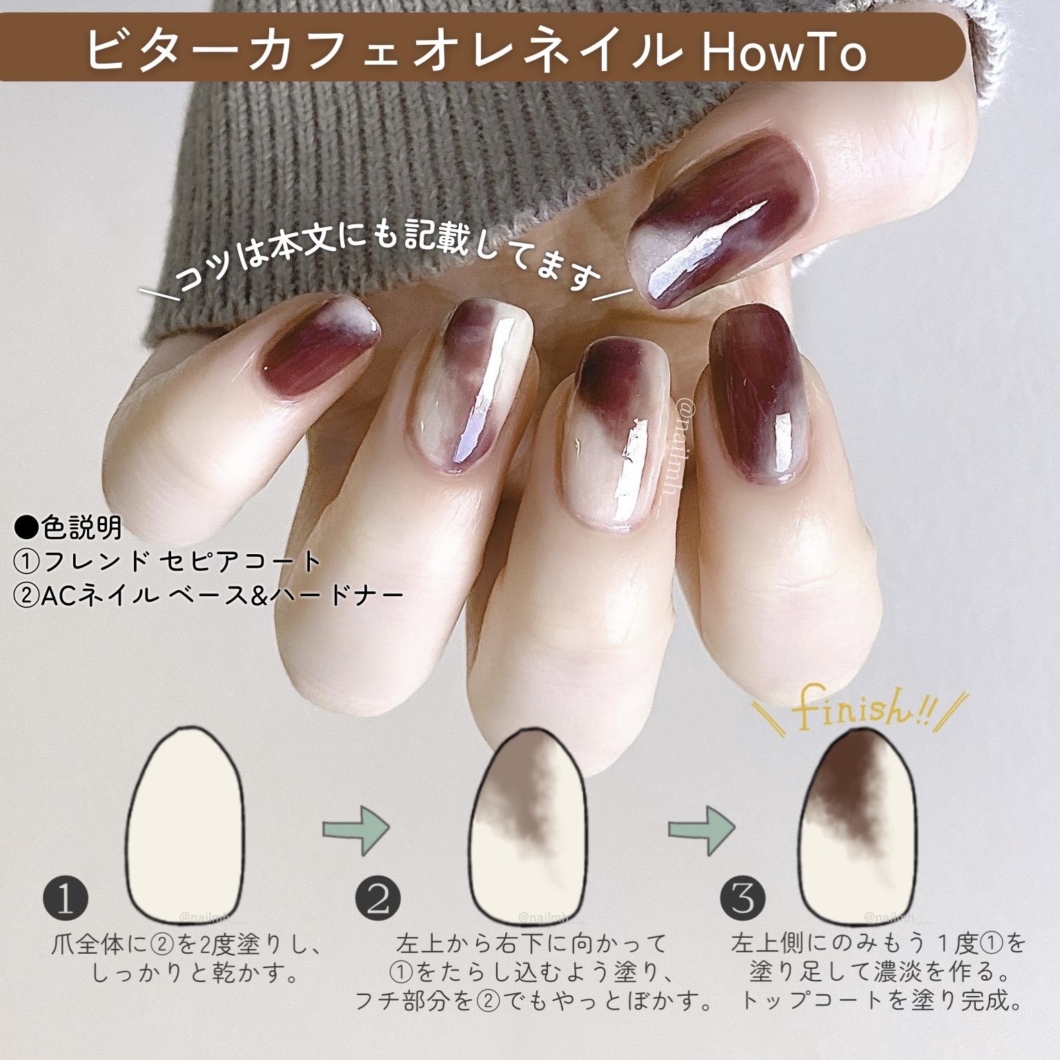 ぽわんと血色感とちゅるんとしたツヤが可愛らしいネイルの紹介です! 中心に乗せた色をぼかすときは、素早くかつハケを優しくとんとんと叩いてぼかすこと。 ぼかす時にハケ跡がついてしまうと綺麗なぽわんとした血色感にならないのでぼかす時はハケをこすったり左右に動かすというよりはとんとんと軽く叩いて広げていくようなイメージでぼかしてください