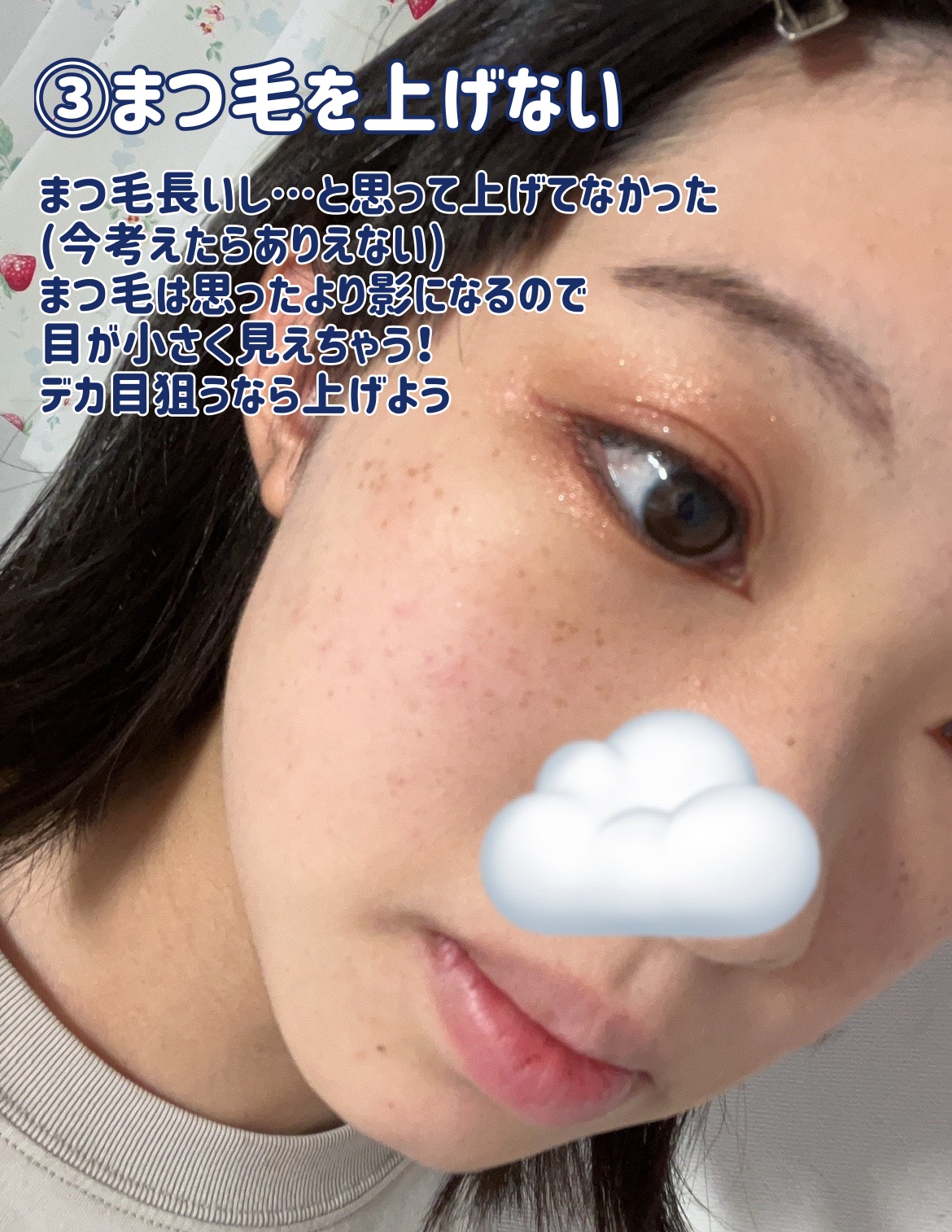下地 キャンメイク/マーメイドスキンジェルUV C03 ノーズシャドウ/ハイライト キャンメイク/ノーズシャドウメーカー 02 チーク/アイシャドウ(涙袋だけ) セザンヌ/チークブラッシュ 03