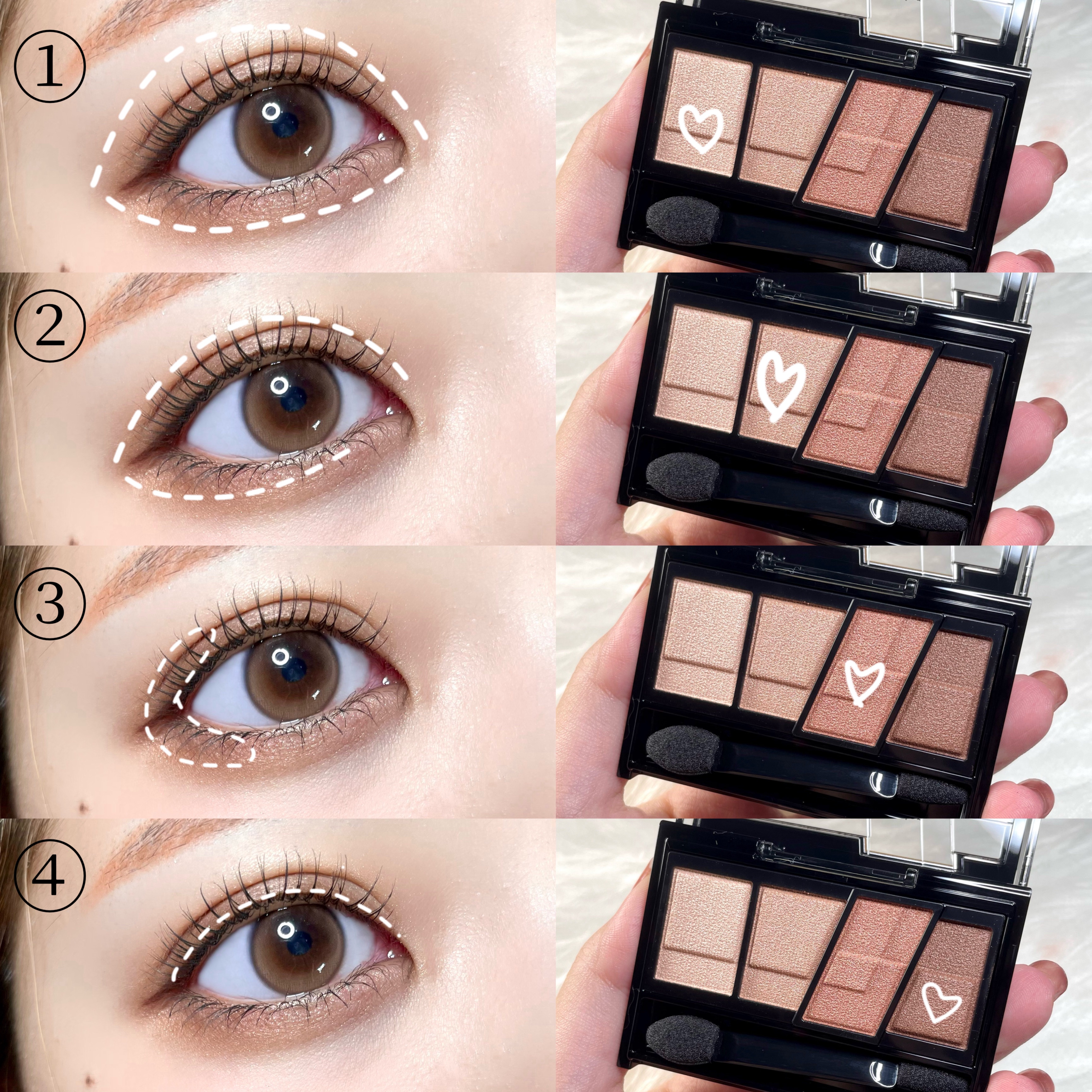 - カラーニュアンスシェードを目尻に入れるだけで目幅を大きく見せ※、抜け感のある明るい大きな目元に仕上るブラウンアイシャドウ。 ブラウン×カラーニュアンスの4色セット。※メイクアップ効果