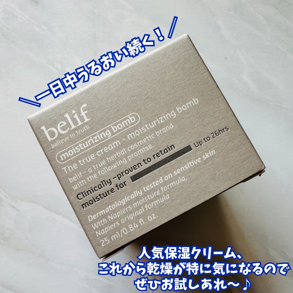 - 肌をオアシスのように、保湿爆弾!長時間潤いが持続する保湿クリーム。 高い保湿効果を持つコンフリーリーフが含有されたクリームで砂漠のような気候でも驚きの保湿感持続をお届け。柔らかい生クリームタイプの真っ白なクリームが肌を負担の少ない優しい使い心地で包み込み長時間しっとり感を与えます。合成有機色素や動物由来成分を使用しないbelifの真心を込めた処方です。