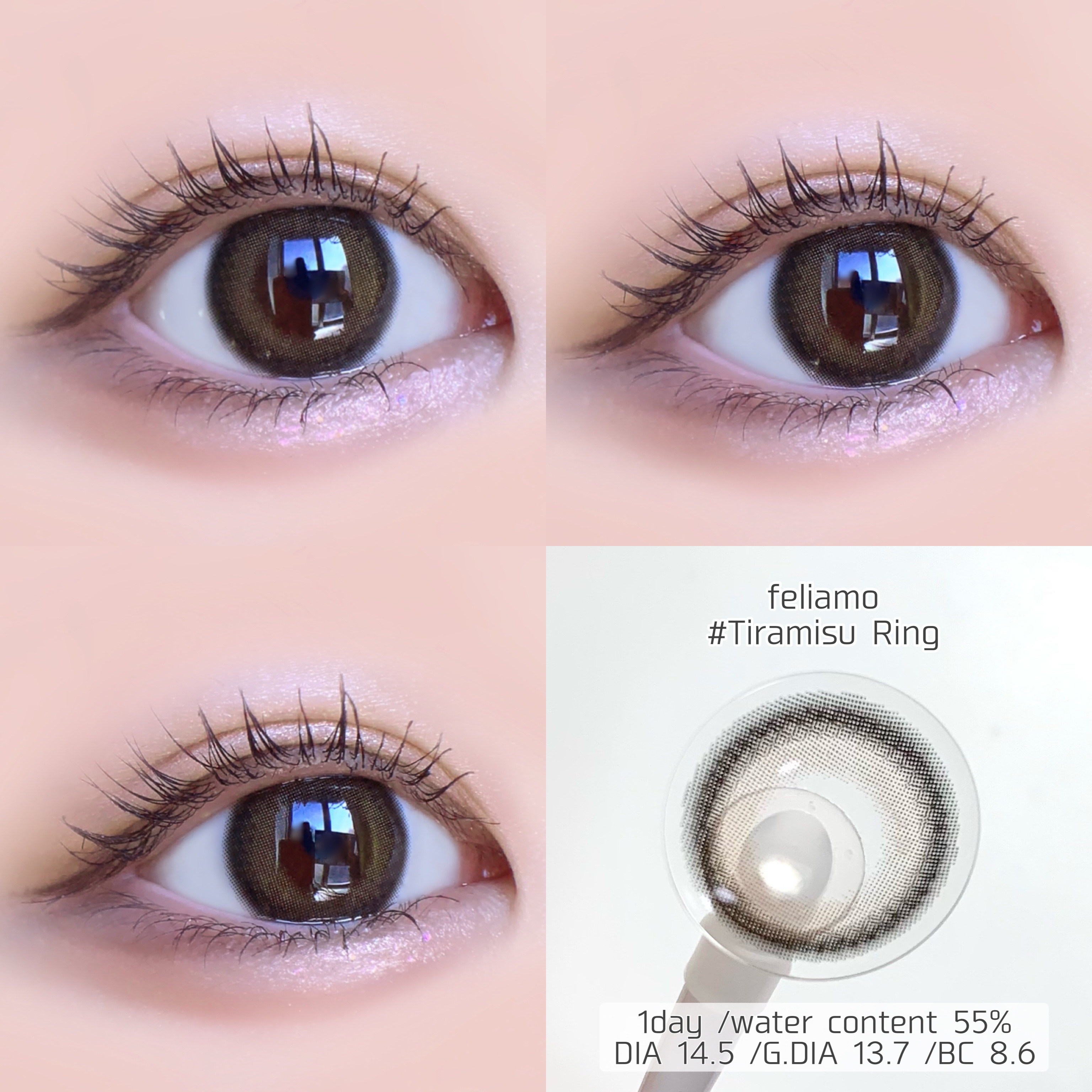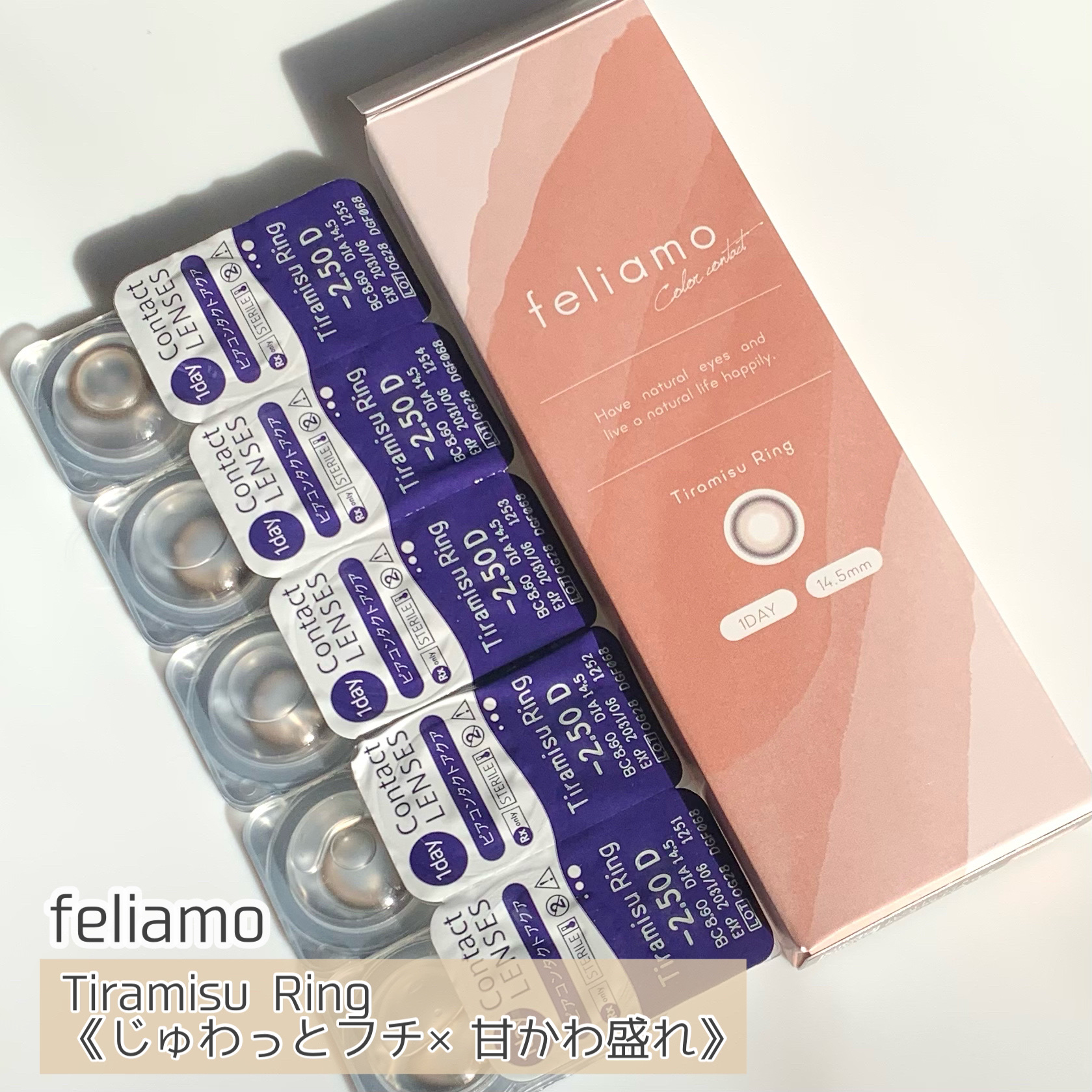 - ※2025年6月以降、商品パッケージ裏面・側面の一部表記を順次変更いたします。尚、これにかかる商品の交換・返品は承っておりません。 どんな瞬間にも溶け込む誰からも愛される瞳へ feliamoの由来は felice amore~幸せな愛~ 瞳から愛されオーラを放つ好印象レンズで女性らしさと品を演出。 オンも、オフも、特別な日も。 どんな場面にも溶け込むレンズラインナップで誰からも愛される瞳に。 UV CUT Feature1 肌や瞳に有害といわれ、白内障などの眼病を引き起こす危険性のある紫外線を99%カットします。(UV-A波75%、UV-B波99%カット) イオン性 Feature1 水分を多く含み酸素を通しやすいため瞳にやさしい使い心地で、快適な装用感です。 高含水 Feature1 水分が多く含むやわらかい素材で、快適なつけ心地です。 レンズ構造 Feature1 まぶた側に着色剤を内包しているため、角膜に色素が触れることがない構造を採用しています。 レンズ形状 Feature1 フチを丸みのある形状にすることで自然な装用感を実現しました。 ※装用感には個人差があります。 カラーコンタクトレンズの不適正使用による眼障害の危険性等などがあります。 ●コンタクトレンズは高度管理医療機器です。不十分な洗浄・消毒など不適切なケアや、長時間・交換期間を超えた装用により、アレルギー性結膜炎、角膜感染症、角膜潰瘍等の重篤な眼障害が発生する危険性があります ●ご使用前に取扱説明書を確認してください 使用上の留意事項 ●眼科医院等を受診してからお求めください ●眼に異常を感じたら直ちにレンズ使用を中止し、お近くの眼科等で診察を受けてください ●医師の指示にしたがってご使用ください ●コンタクトレンズを装用する場合、自覚症状がなくても、眼科医院等での定期検査を受けてください ●レンズに不具合がある場合は使用しないでください