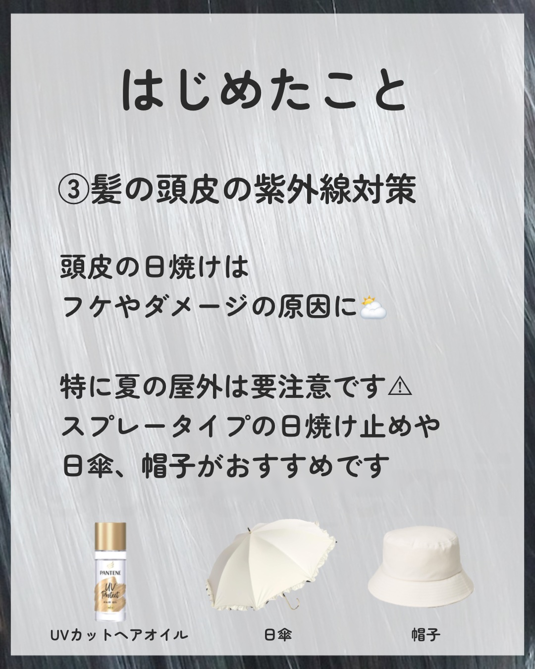 髪がツヤツヤになるヘアケアをご紹介します。 UVケアは大切!日傘、帽子、UVヘアオイルなど トリートメントを乳化して優しく揉み込むだけです! ヘアミルクの後にヘアオイルでツヤツヤ度がアップします⤴️ シルクの枕カバーで摩擦を減らしてくれるので髪が変わります✨