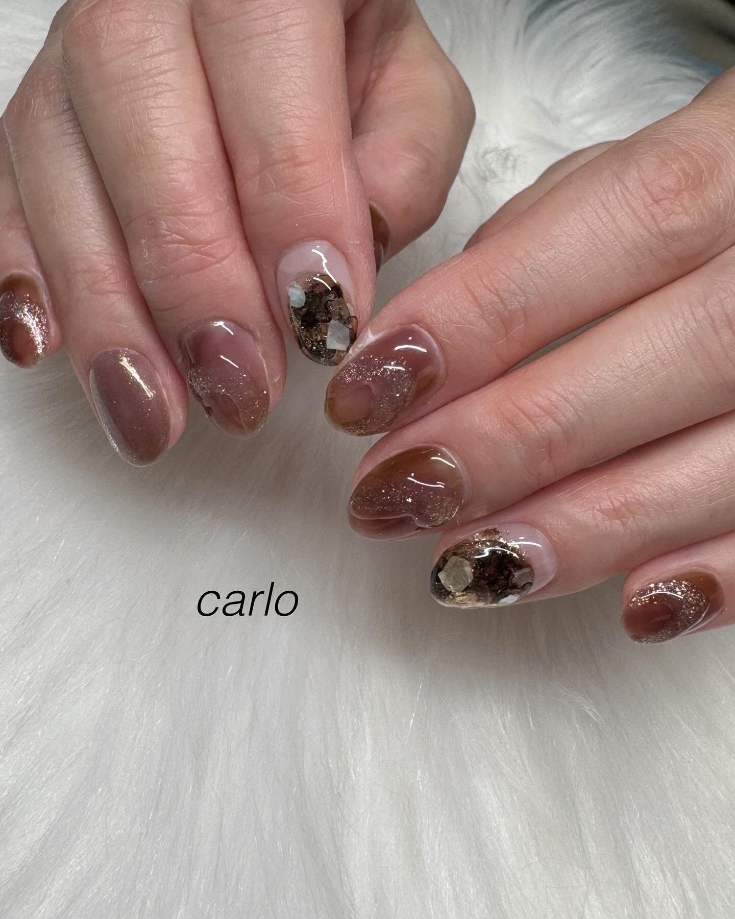 【☾4本art】所沢市ネイルサロン|Carlo.Valentinenail🤎ラブリーすぎない大人にdesign.¥8500-.———————————————open9:00-close18:00ご予約・お問合せLINEID@797vvdnq完...