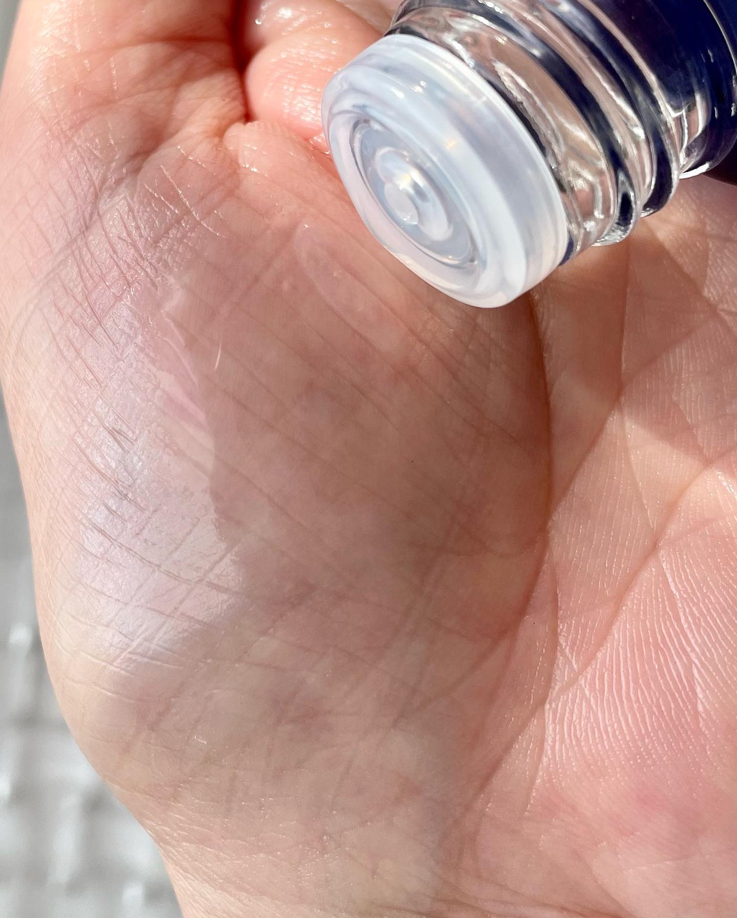 贅沢に美容成分を配合しているクリームは思ったより軽く、みずみずしく、素肌によくのびます。べとつきはしないかな。 プッシュしてエアレスボトルから新鮮なクリームが出てくるから量も調節しやすい🙆♀️ クリームはジェルのようにみずみずしいよ。少し高級化粧品によくあるような独特の香りがします。 ピンク色のエアーレスのボトル プッシュするとクリームが出てきます。