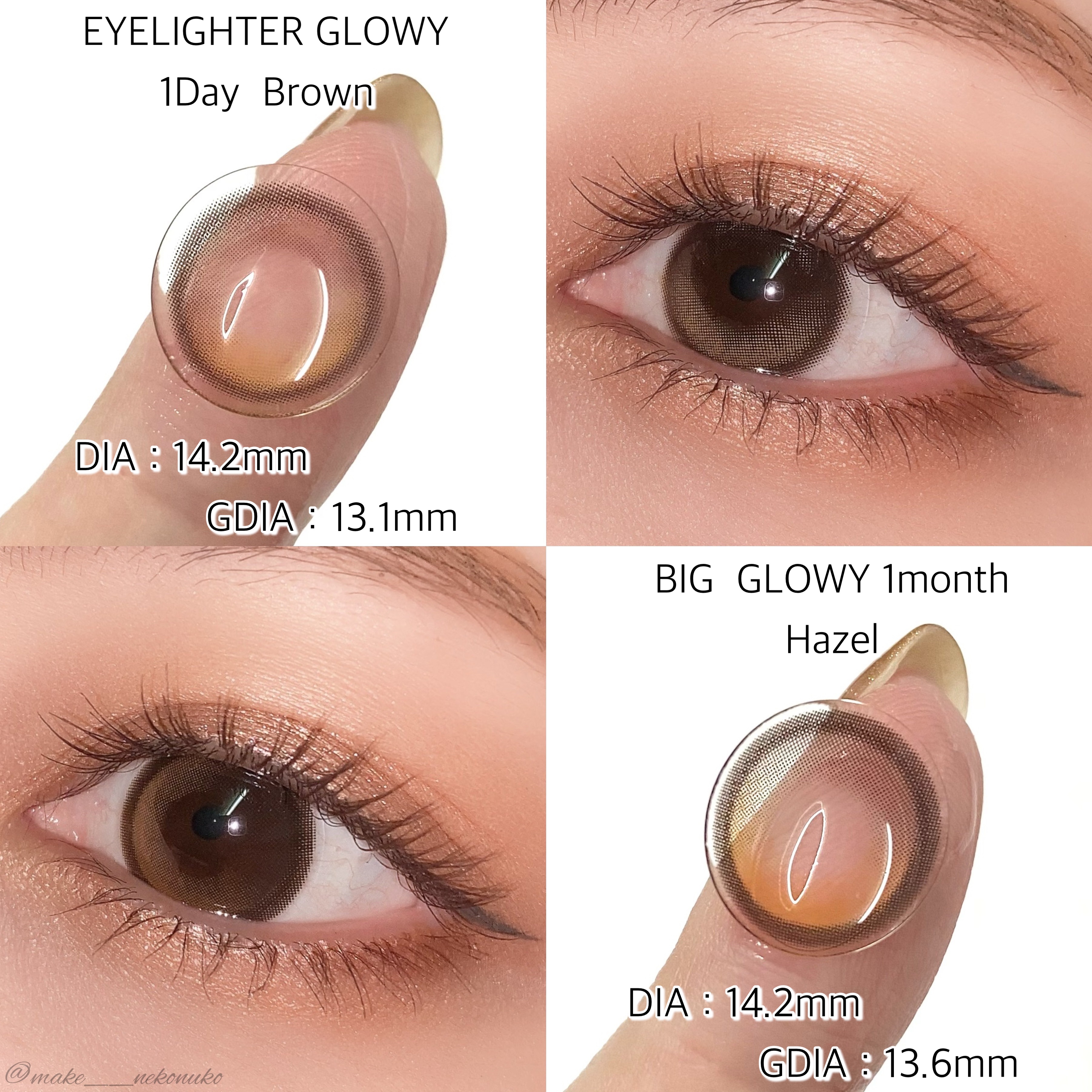 𝙾𝙻𝙴𝙽𝚂ブラウン系水光カラコン3種類比較♡◾︎GlowyNatural(Color:LatteBrown)⇨ナチュラル・デイリー向きな きゅるきゅるとしたナチュラル水光カラコン♡◾︎Glowy(Color:Brown)⇨ツヤツヤ水光カラコン...