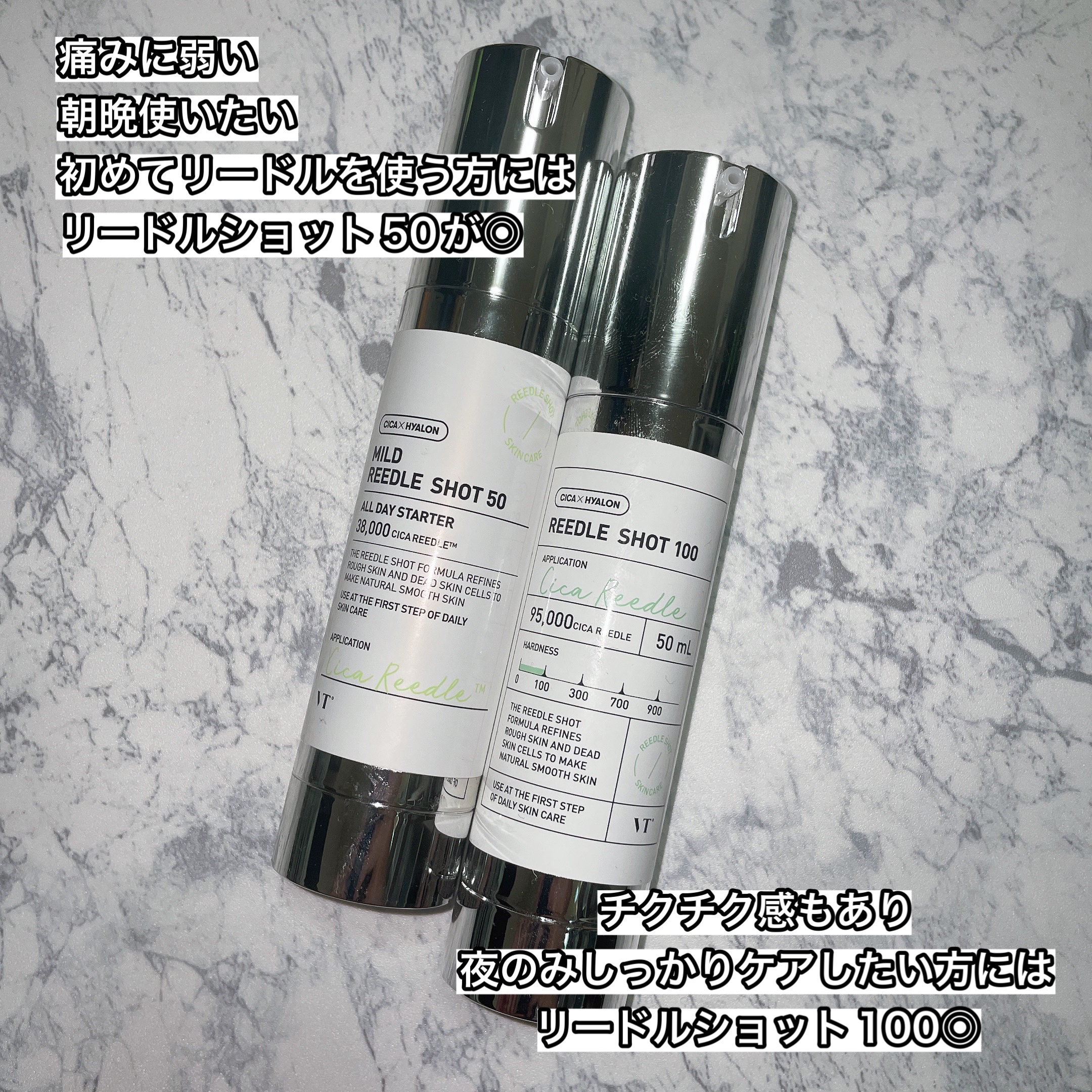 VT独自成分CICA REEDLE™M美容針が角層まで浸透し、お肌のキメを整えブースティング なめらかなテクスチャ。美容針が程よく300はややチクチク感があります。 50はほとんどチクチク感じないので、初めての方はこちらから使うのが良いかもしれません。