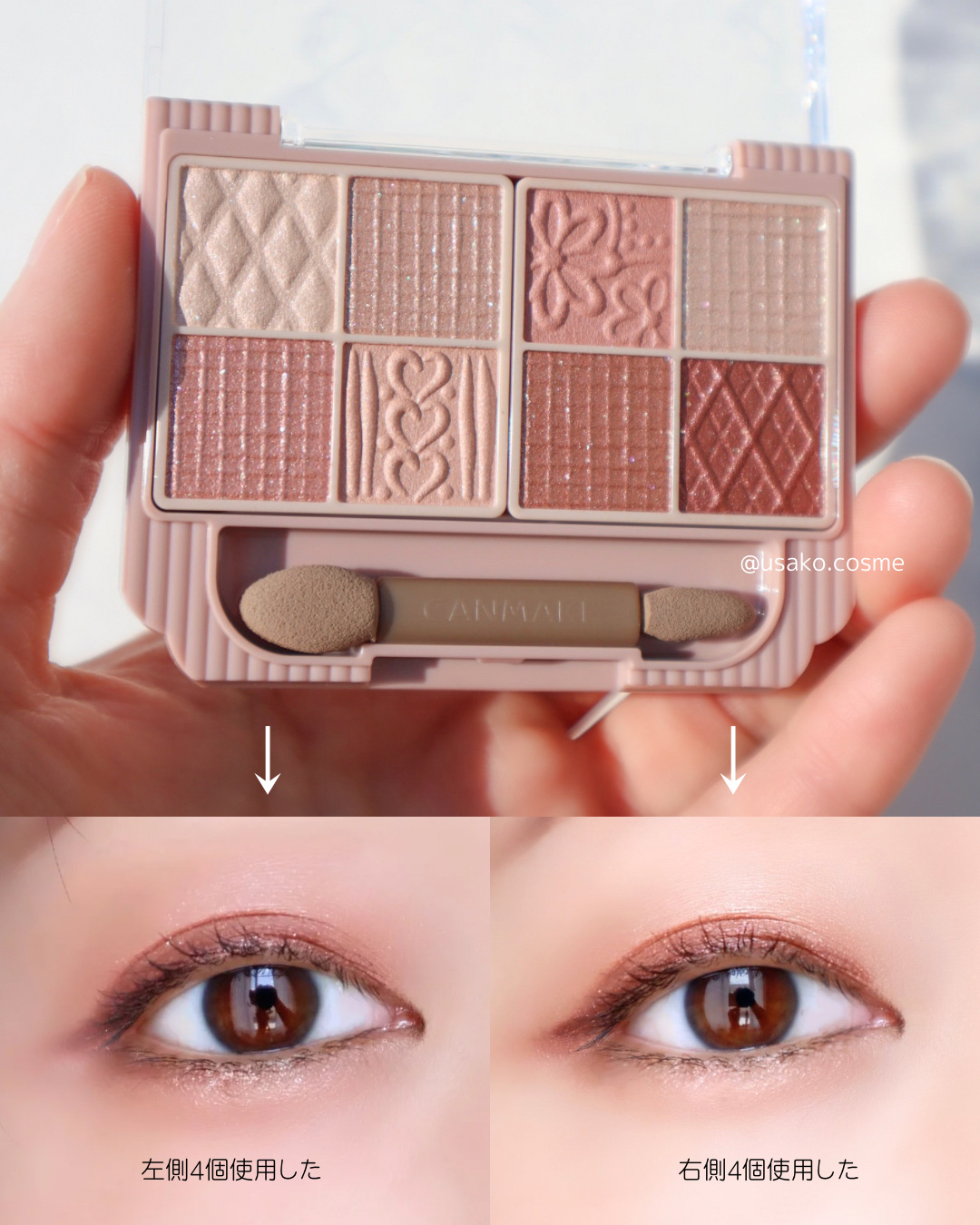- 持ち歩ける多色パレットがキャンメイクから登場! 捨て色なしの8色入り&チップ付! 「持ち歩けること」や「外出先でもメイク直しができること」を重視した多色パレット。 持ち運びやすいサイズ感なのに、贅沢に8色入りです。 さらに便利なダブルエンドチップまで! マット×パール×ラメなど、組み合わせ方はあなたの自由! 自分好みのアイメイクを楽しめます。