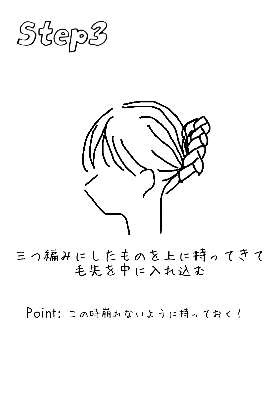 私、髪が細くて薄いのでピンで留めてもすぐ取れちゃうんです。そんなわけで、三つ編みとゴムがあればできる簡単アレンジやってみました。ゴムは三つ編みを止める絡まない細いゴム2本固定するのに使う太めゴム2本を使用しています。...