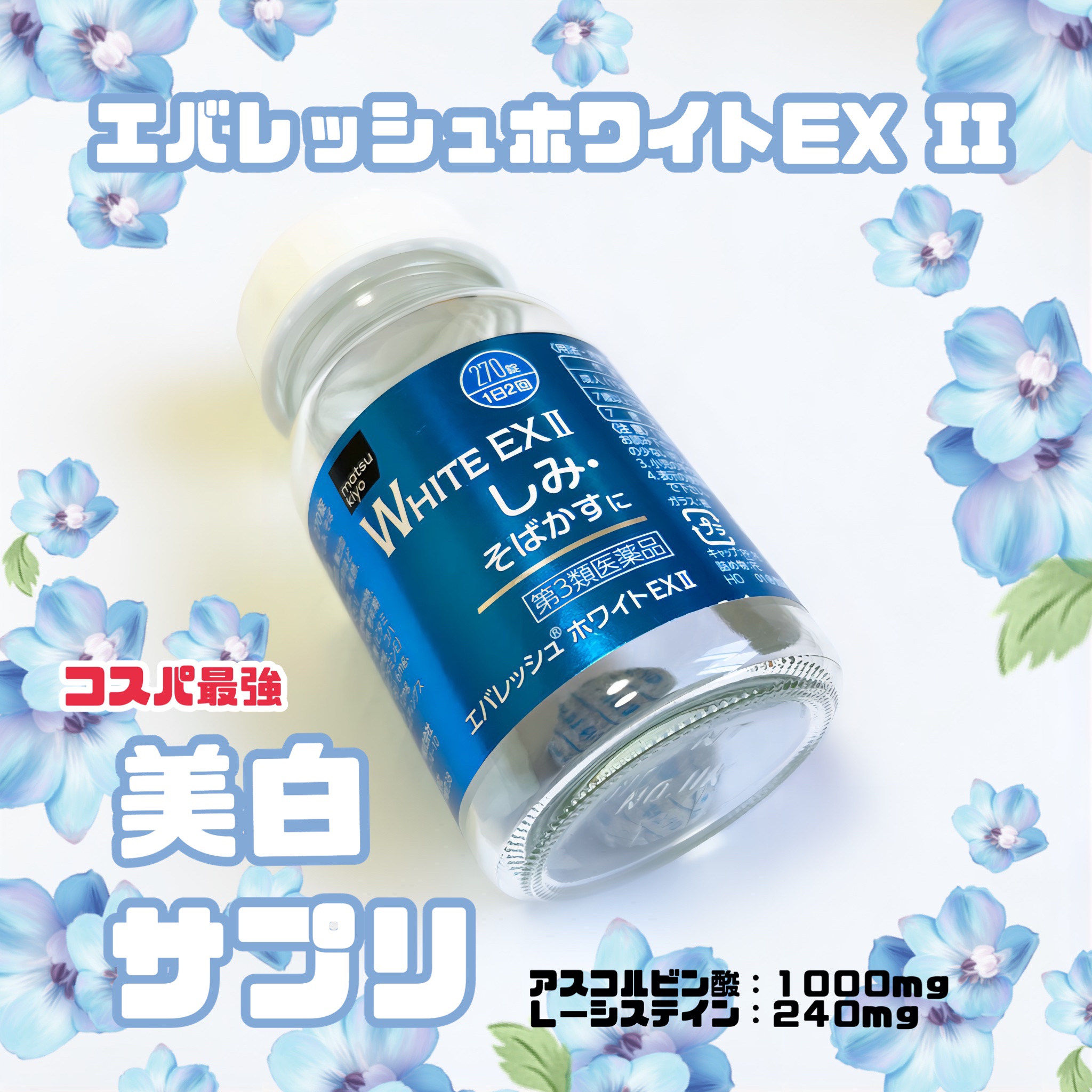 シミ、そばかす、色素沈着に🚑🌱□商品情報□ブランド名:マツモトキヨシラボ商品名:エバレッシュホワイトEXII販売価格:180錠税込¥2,074-/270錠税込¥2,933-このサプリは、"L-システイン"と"ビタミンC"で色素沈着やシミ、そば...
