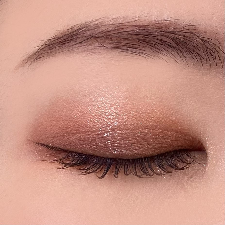 アイシャドウとハイライトがセットになった便利パレット! 2022年大人気だった限定カラーが復活して定番色に! どうみても誰もが使いやすいし好感度高い配色💗 暖かみのあるベージュトーンパレットでどう使ってもナチュラルで抜け感のあるメイクに✨ ラメは細かく繊細だから派手になりすぎず上品☺️ 他の3色はかなり似た色だから簡単にグラデーションが作れるよ! ハイライトはパール感があってツヤッツヤ✨ ベージュトーンのハイライトだから肌馴染みも抜群! 自然なツヤ感と立体感を作ってくれるよ😆