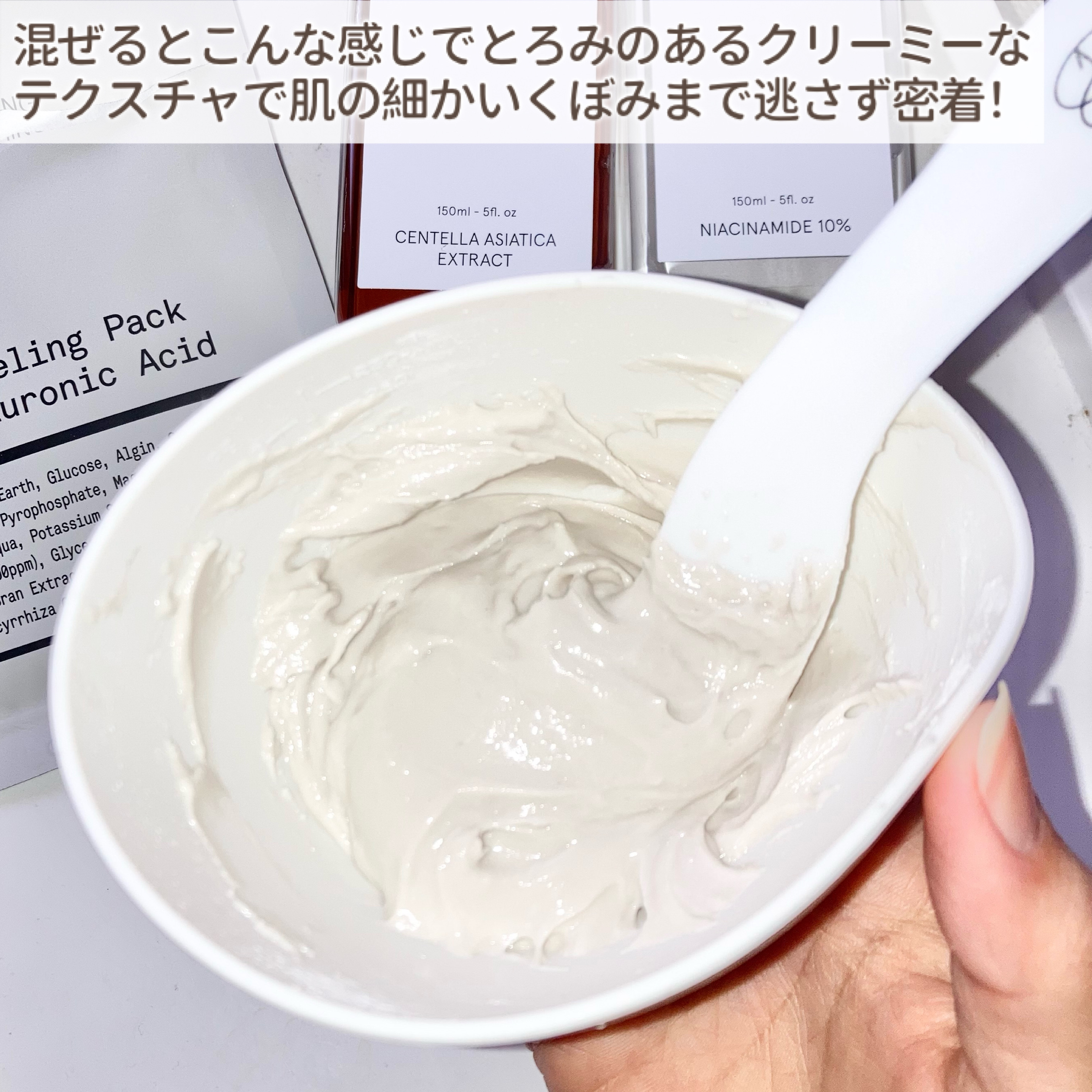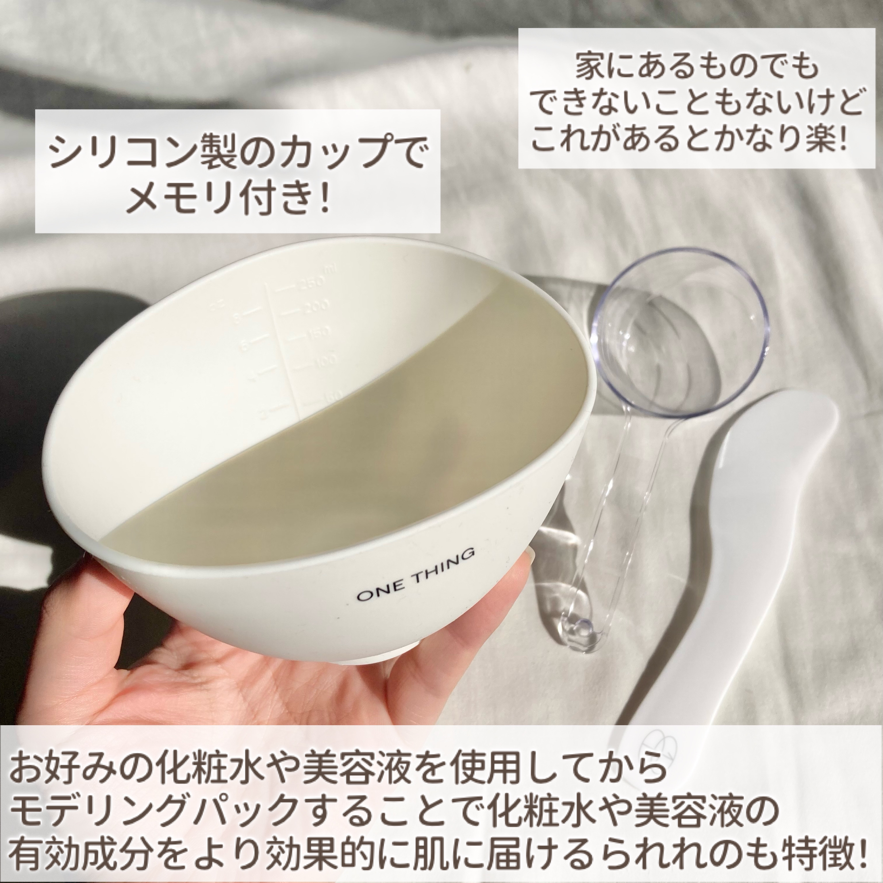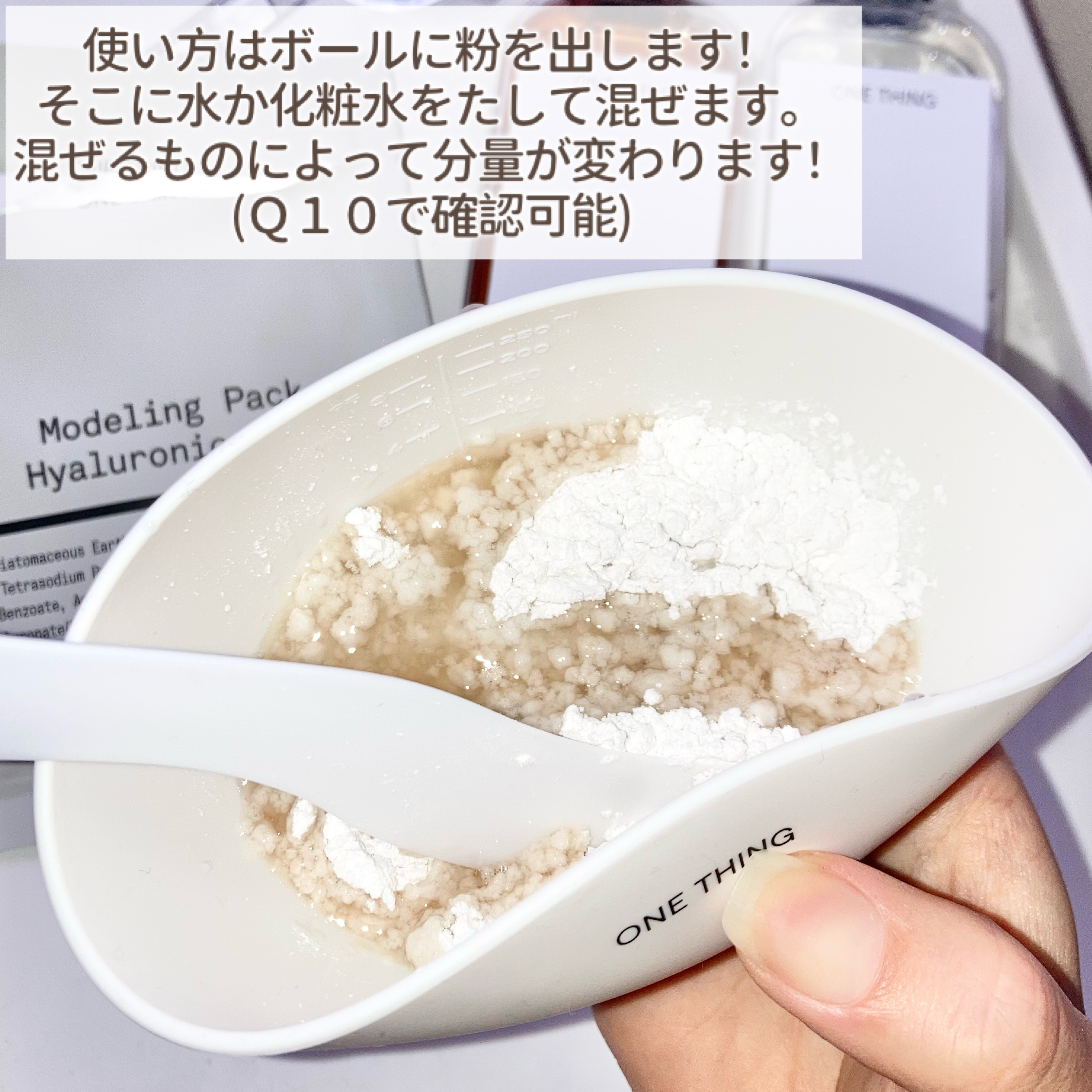 ONETHINGナイアシンアミド化粧水ツボクサ化粧水そのまま使うのかと思っていたら違った!シリコンボウル&スパチュラもセットになっていて#モデリングパックがすぐ作れたよ顔に塗って15分~置くと固まってぷるぷるになるから剥がすだけつるんと剥がれ...