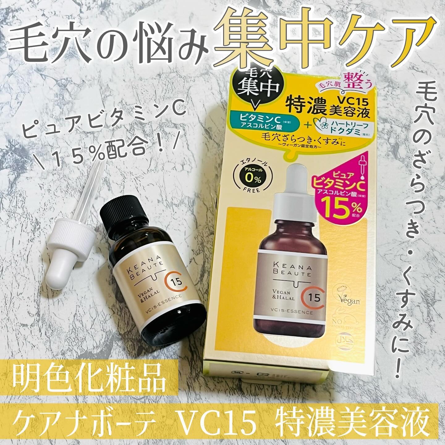 ケアナボーテVC15特濃美容液ピュアビタミンC15%高配合の美容液💫深刻な毛穴ざらつき・くすみにアプローチするんだって👀さらりとしたテクスチャー。スーッとお肌に伸び広がります。サッと肌に馴染んで使いやすい◎べたつきはなく、軽やかな使い心地。し...