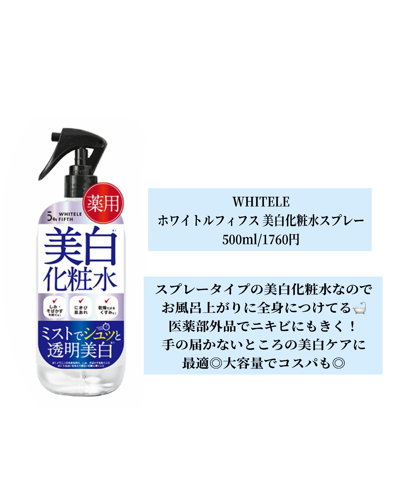 | スキンケアランキング第11位 | スプレーのキリが細かいのでべちゃっとつかず、均一にスプレーできる | 詳細を見る | |