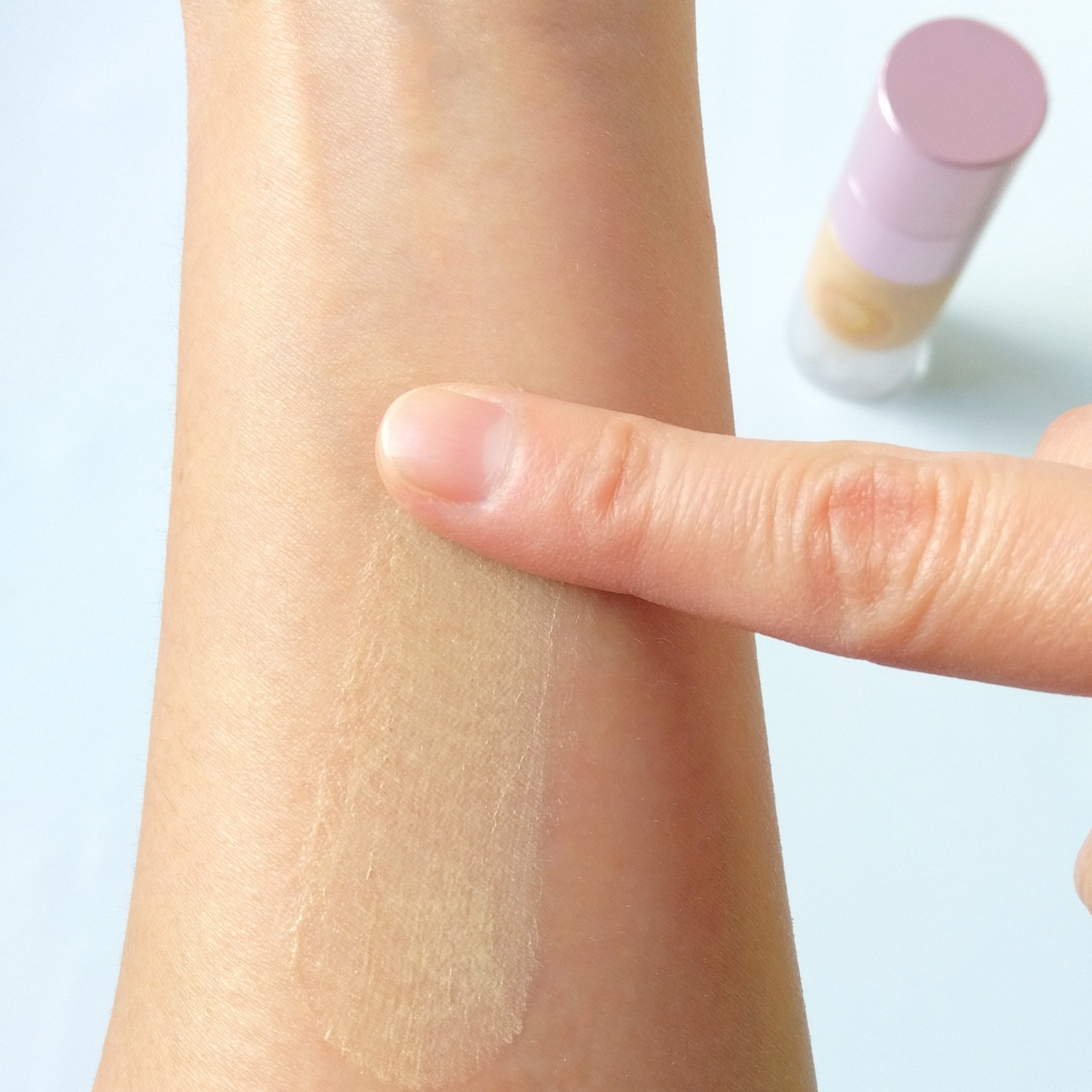 - 水、BG、エチルヘキサン酸セテアリル、酸化チタン、1,2-ヘキサンジオール、パンテノール、水添野菜油、ベヘニルアルコール、タルク、セテアリルアルコール、ステアリン酸、(ジメチコン/ビニルジメチコン)クロスポリマー、カルボマー、トロメタミン、アラントイン、キサンタンガム、エチルヘキシルグリセリン、ポリアクリレートクロスポリマー-6、パントラクトン、ヒマワリ種子油、グリセリン、t-ブタノール、加水分解コラーゲン、シロバナルーピン種子エキス、マコンブエキス、アロエベラ葉エキス、スミレ花エキス、ヤマノイモ根エキス、ウルムスダビディアナ根エキス、トコフェロール、EDTA-2Na、酸化鉄