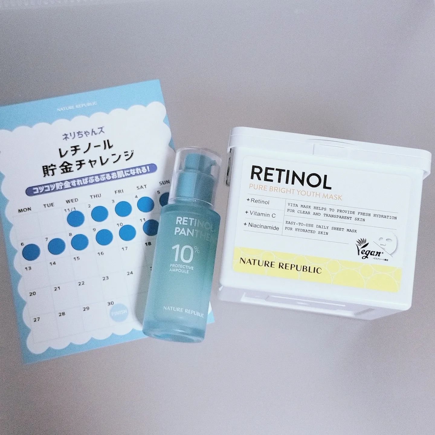 レチノール*をメイン成分とし、9種類のビタミン(*1)を配合した「レチノール* ピュアブライトユースシートマスク」。 マイルドでさっぱりした使い心地がまだまだ蒸し暑いこの季節にぴったり! 薄いシートで密着してくれる感じでとても好きな感じ◎