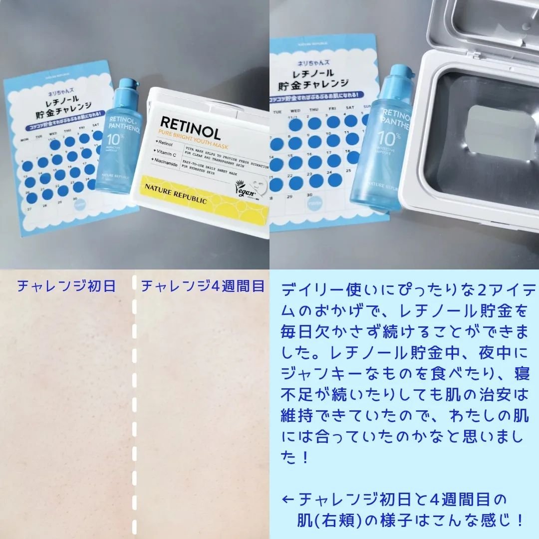 レチノール*をメイン成分とし、9種類のビタミン(*1)を配合した「レチノール* ピュアブライトユースシートマスク」。 マイルドでさっぱりした使い心地がまだまだ蒸し暑いこの季節にぴったり! 薄いシートで密着してくれる感じでとても好きな感じ◎