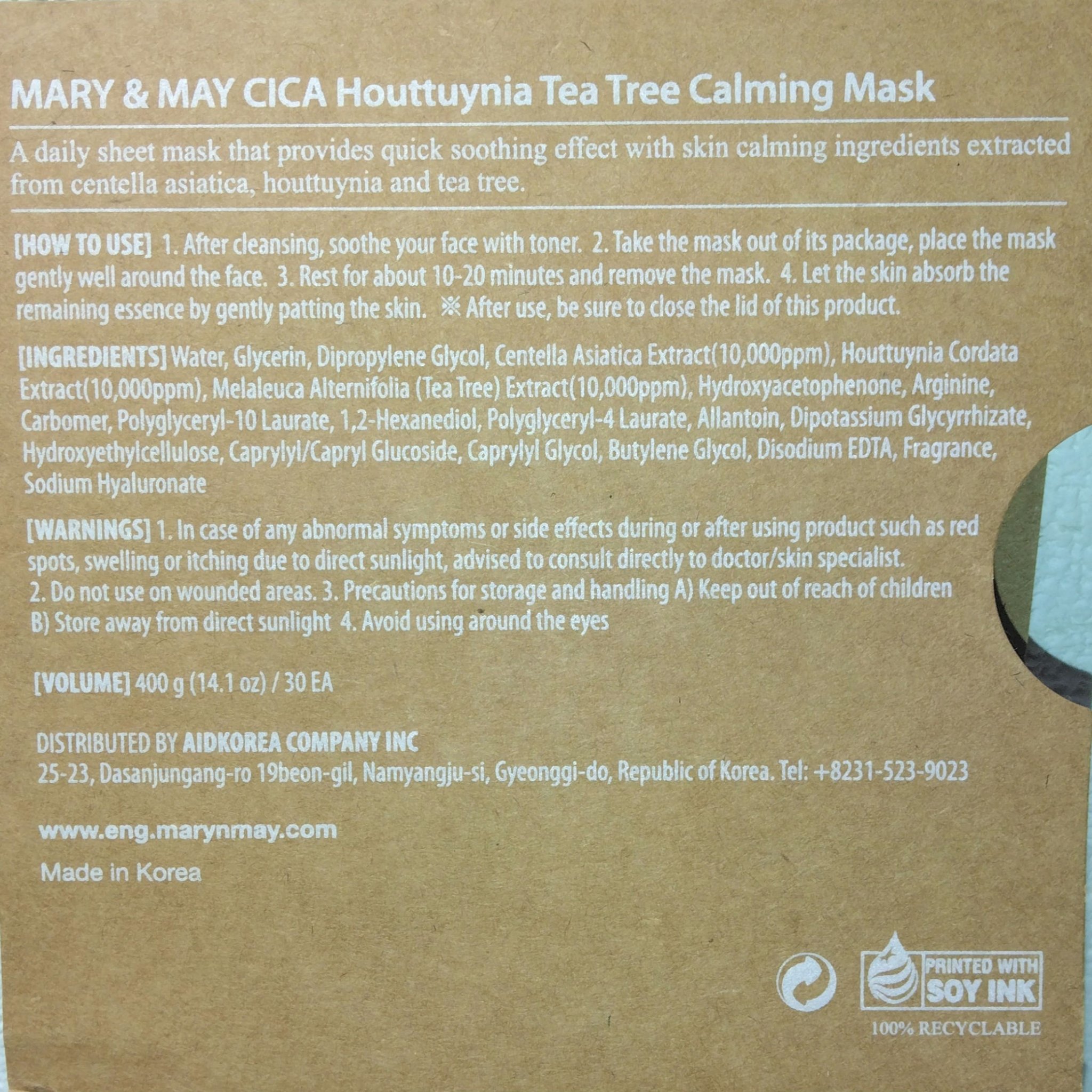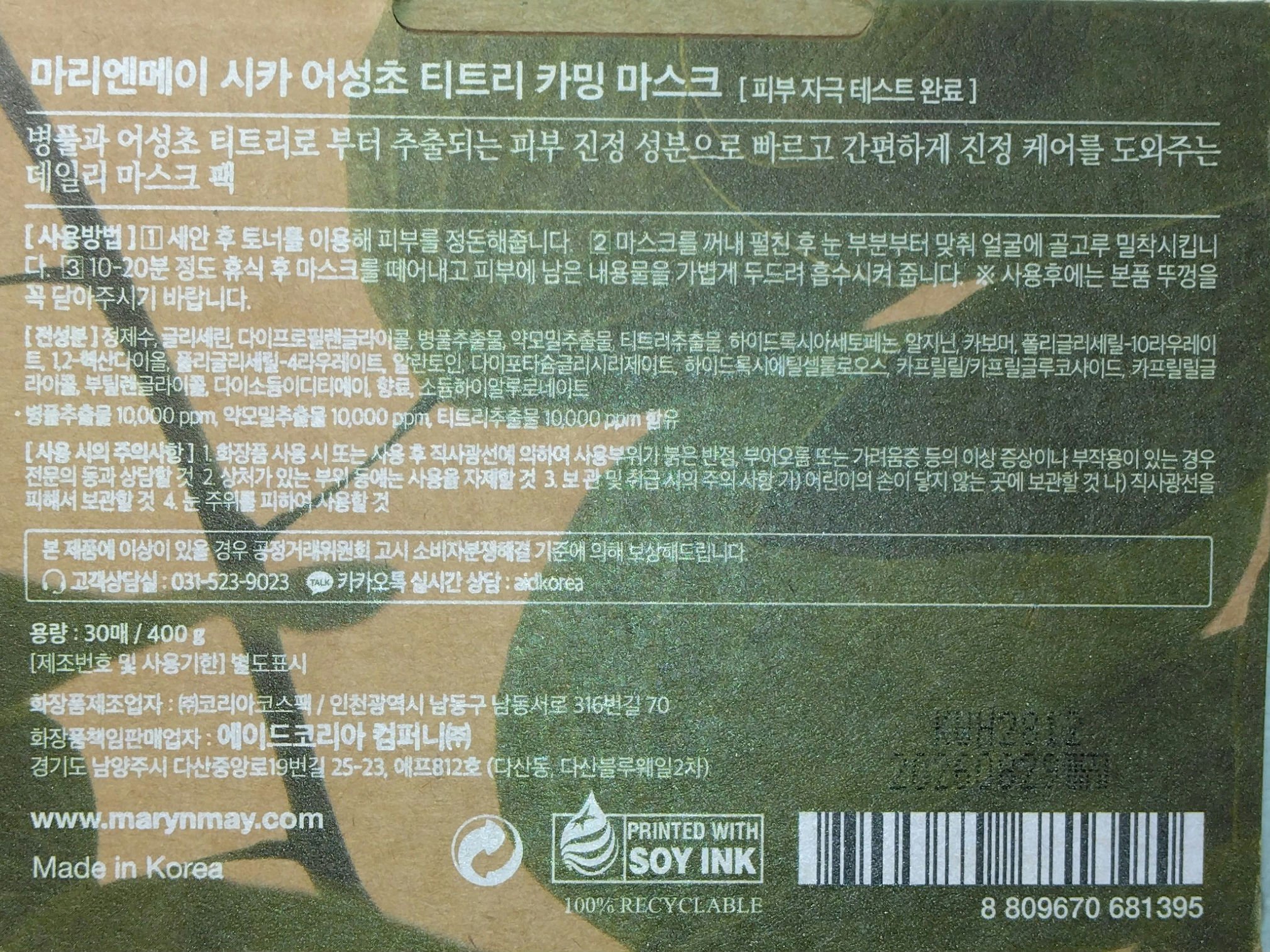MARY&MAY シカドクダミ+ティーツリーカーミングマスク |