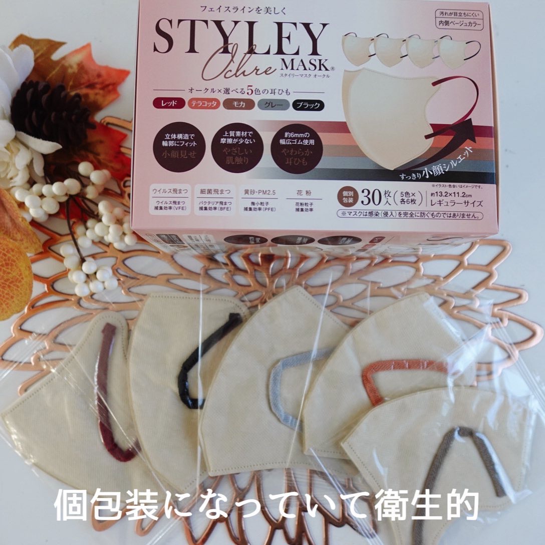 #PRやまと工業スタイリーマスクUVオークル30枚ファッション性と機能性を兼ね備えた、立体型不織布マスク「STYLEY(スタイリー)」すっきり小顔シルエット🤍オークル×選べる5色(レッド、テラコッタ、モカ、グレー、ブラック)の耳紐で、その...