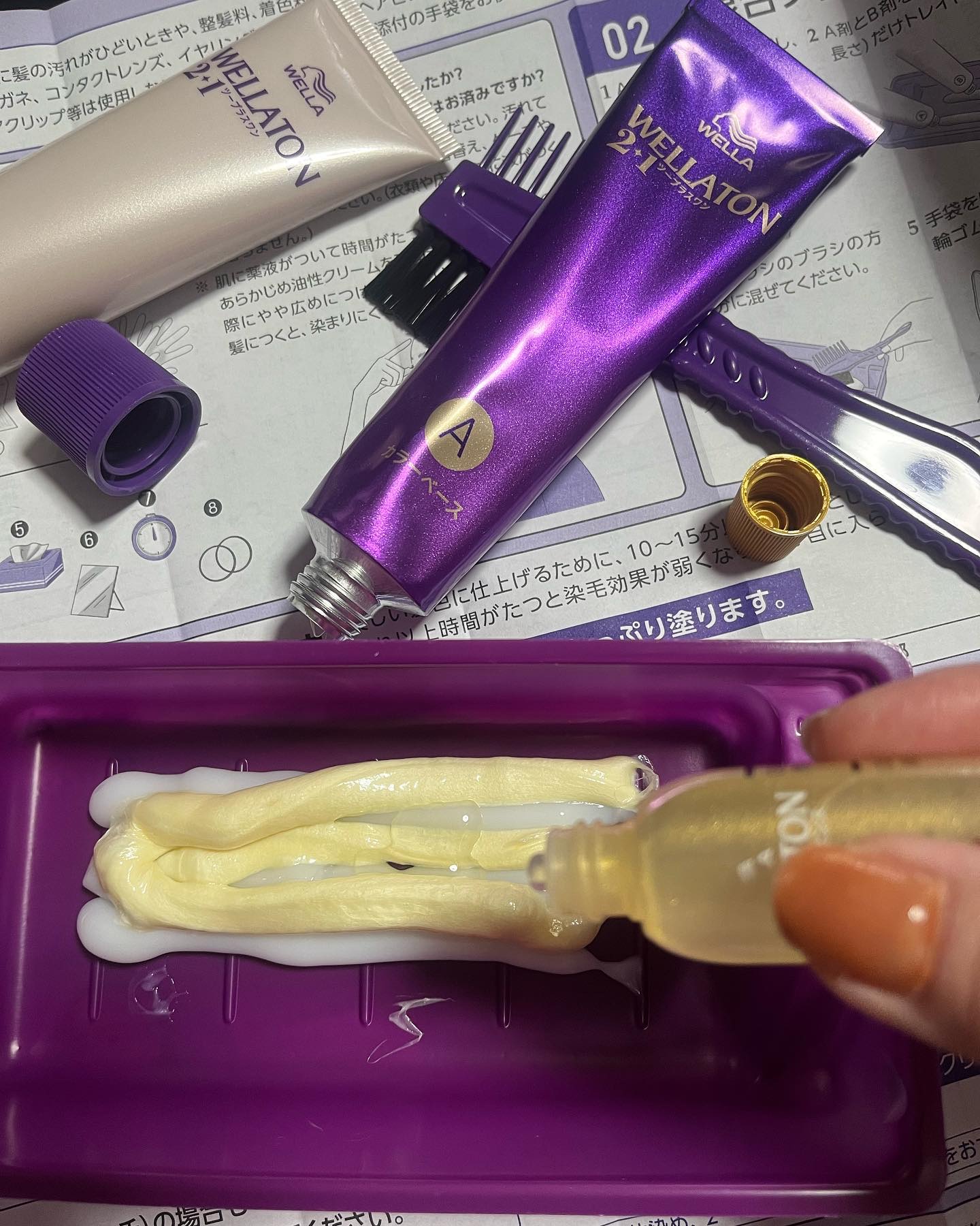 白髪をきれいに染めたい&気分転換したい! 最近暖かくなり春が待ち遠しいこともあって、今回は明るいピンクブラウン「7PB」を選んでみました。 白髪染め特有のツンとした香りが抑えられているので、しっかり換気すれば気になりません。 染めた直後のツヤ感も◎。春にぴったりの明るい髪色で、気分もアップ!