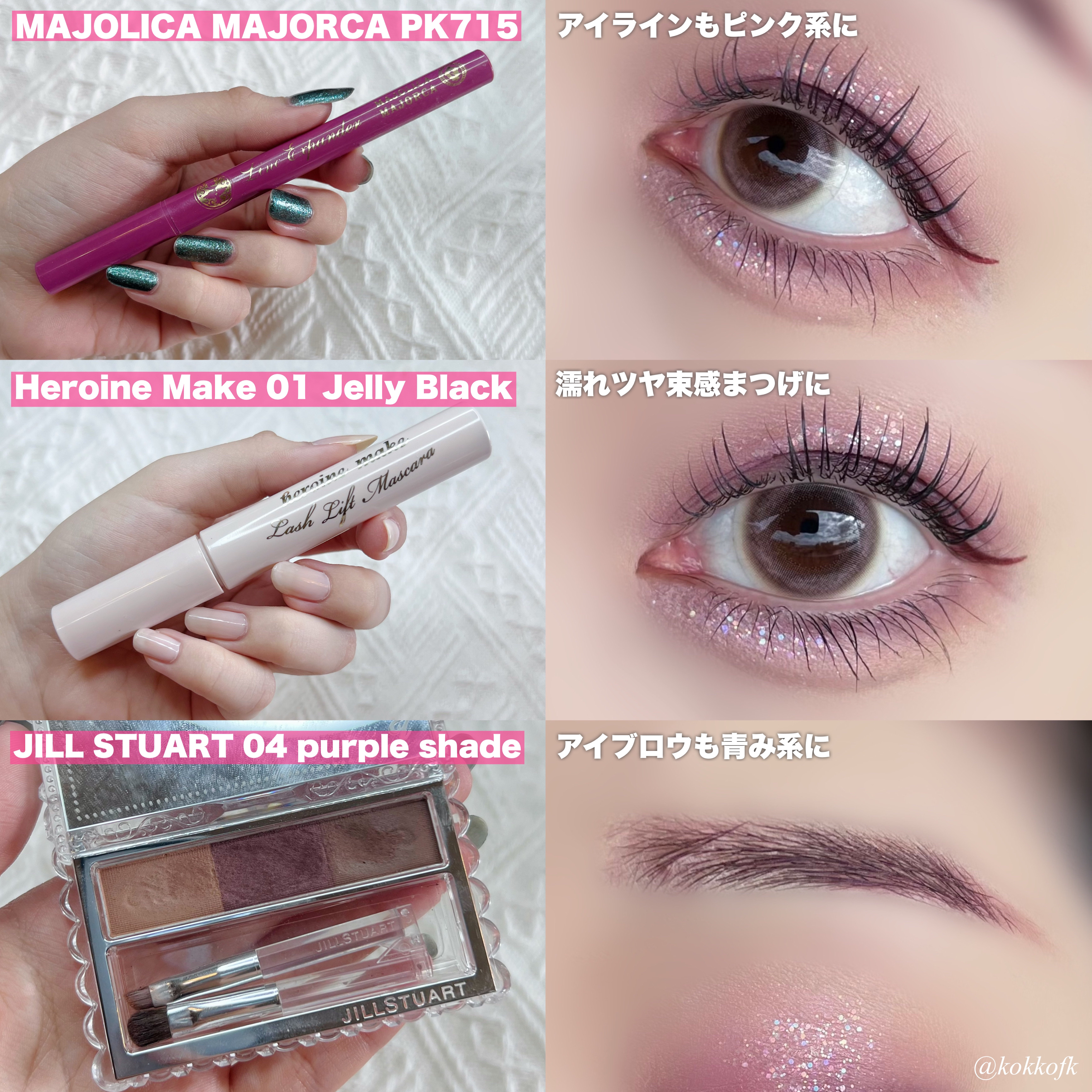 W デイリームードアップパレット01 ソフトモーブピンク (¥2420) プロ アイ パレット13 PICNIC BY THE SUNSET, グラムチェンジマルチパレット04 ユニコーンピンク (¥1890) グリッターぺディアアイパレットN°4 オールラベンダーフォグ (¥2950) シャドウパレット16 バイオレットニット (¥3610) ベターザンパレット06 PEONY NUDE GARDEN, 09 DREAMY LILAC GARDEN (¥2900)