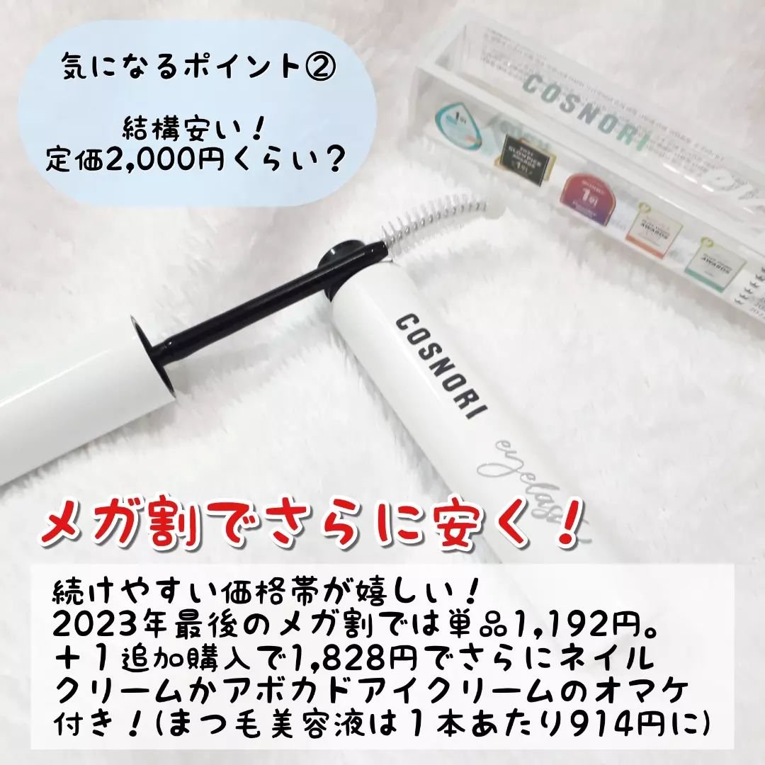 もっと見るおすすめアイテムCOSNORI×まつげ美容液