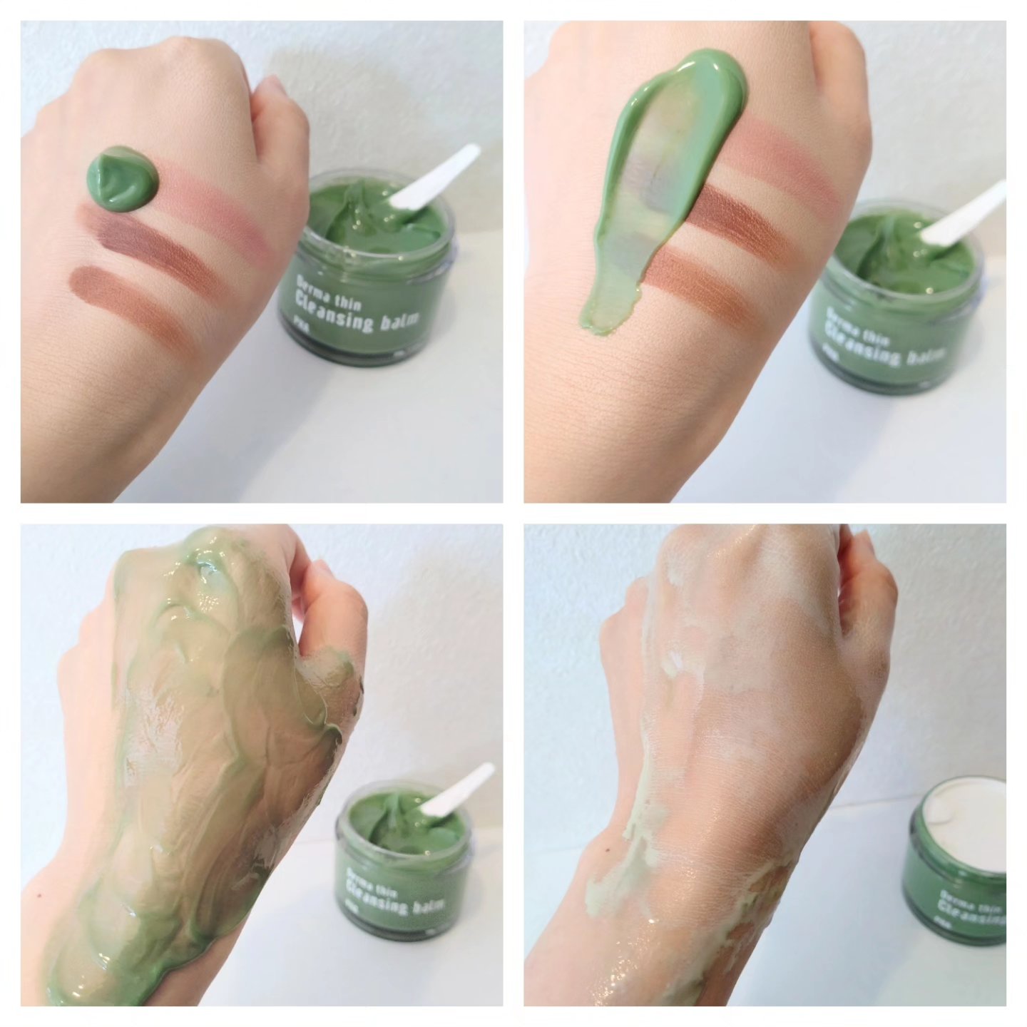 ほっこりする森の動物たちのイラストがかわいい♪ 乾燥小じわを目立たなくする※1 品 5 役の多機能クレンジングバーム クレイ×オイル×酵素で、しっかりメイクもするっとオフしながら乾燥による小じわを目立たない肌に! 毛穴ケア、保湿ケア、角質ケア、マッサージ、メイク落としの5つが、これ1つで◎ クレイ(赤泥)、ローズヒップオイルなど、こだわりの成分配合 ジャーのフタを開けると、ビックリ!! 赤色のスキンケアは初めて。 中には清潔に使えるスパチュラ付き。 そのスパチュラ山盛り一杯すくって、手にのせ、メイクした肌になじませていきます。 肌にのせると、少し固めのテクスチャーだったバームが、体温でとろっと溶けるので、軽くなじませるだけでOK! ふわっとフルーツフラワーティーの少し甘めの香りです♪ 洗い上がりも、しっとりした使い心地です◎