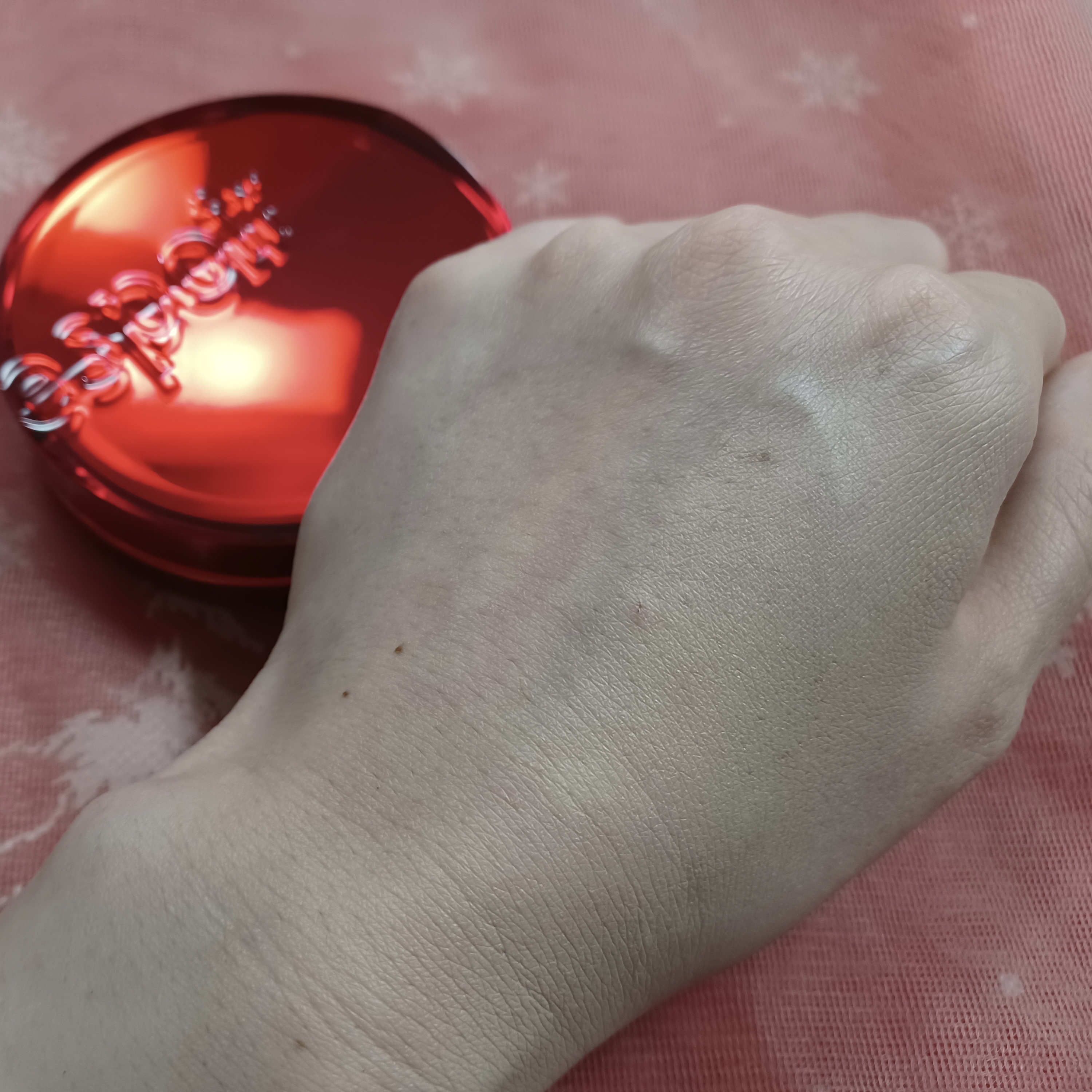 セミマットな仕上がりです。細かいパウダーが施されているようで、軽くお肌に乗りました!