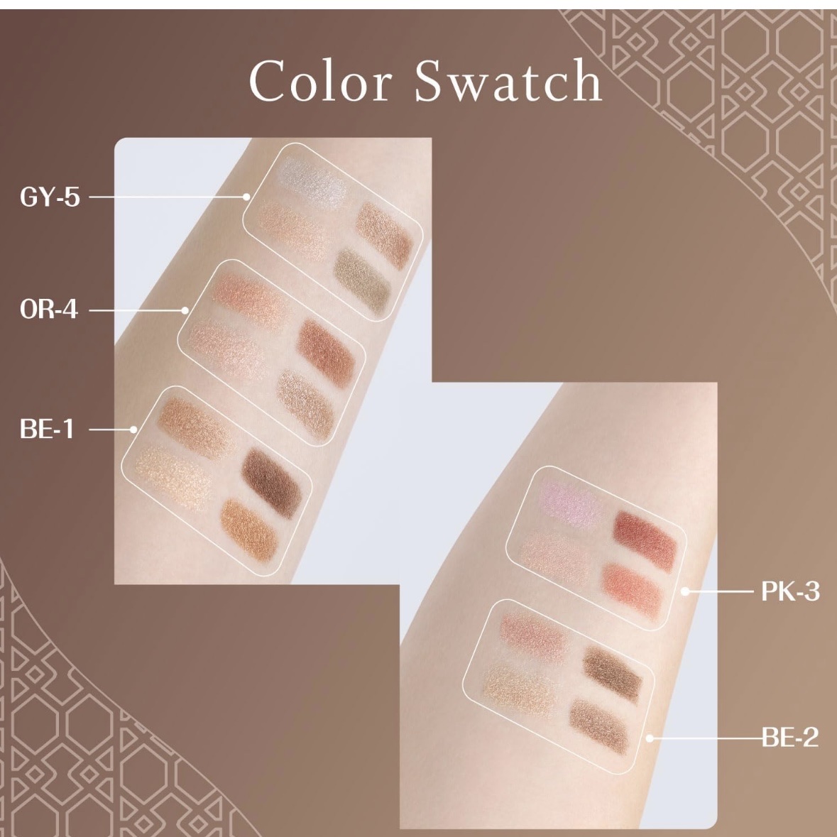 - ● しっとりほぐれるようなタッチで密着し、上品なツヤめきと透け感発色で目もとを彩る 4 色セットアイカラーです。 やさしいトーンの色味と繊細な輝きで、どこか儚げでアンニュイな印象に導きます。 ● レフ板のように光を美しく反射させるライトリフレクションパウダーを配合。 どの角度から見ても、繊細な輝きと濡れたようなツヤを演出します。 ● 透け感があり、軽いタッチでのび広がるクリアパウダーを配合。 色味を重ねても濁りのない透け感発色を叶えます。 ● とてもキメ細かなパウダーに厳選したオイルを組み合わせることで、しっとりなめらかなほぐれ感を実現。 薄膜にのび広がり、まぶたへ溶け込むように密着します。 ● スルスルとした軽い感触のオイルを配合。摩擦抵抗を減らすことで、まばたきや表情の変化によるヨレを防ぎます。 汗や皮脂にもくすみにくいため、時間が経ってもつけたての美しい発色が持続します。 ● まぶたに明るさをあたえ、後から重ねるアイカラーを美しく発色させる「スキンブライトカラー」(A)をセット。 光を味方につけてまぶたのくすみを飛ばし、明るくツヤめく目もとを叶えます。 ● 色ごとに仕切りがないため、1 色ずつはもちろん、パレット内で色を混ぜて塗布することもできます。 ● 美容液成分配合。乾燥しやすい目もとのうるおいをまもります。 ● 無香料