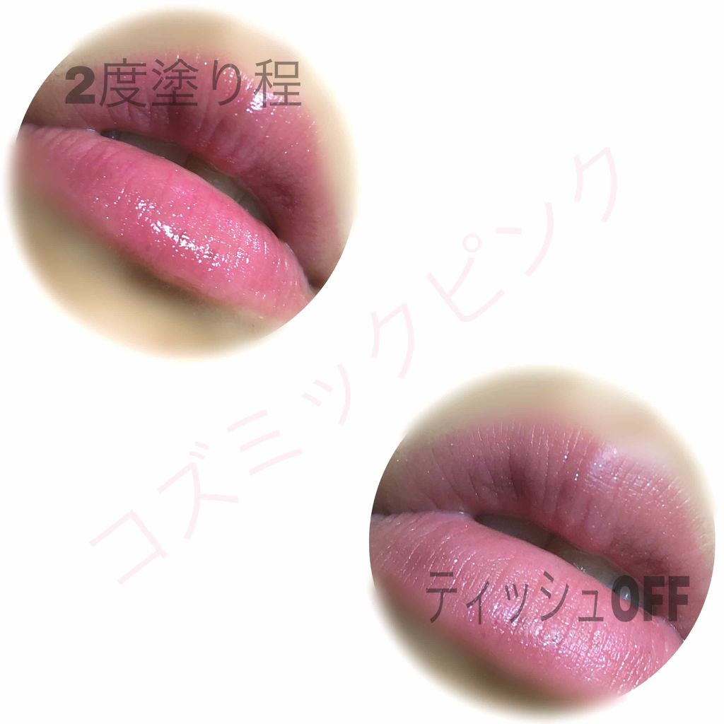 多幸感あふれるクリアなコーラル🩷 特に時間が経つと蛍光感がでてきちゃう。 THEピンクのリップを求めている人にピッタリ! ティッシュオフしても若干色は残ってる! おすすめの塗り方は、いつもよりも少し濃いめに塗ってから、ティッシュオフ!
