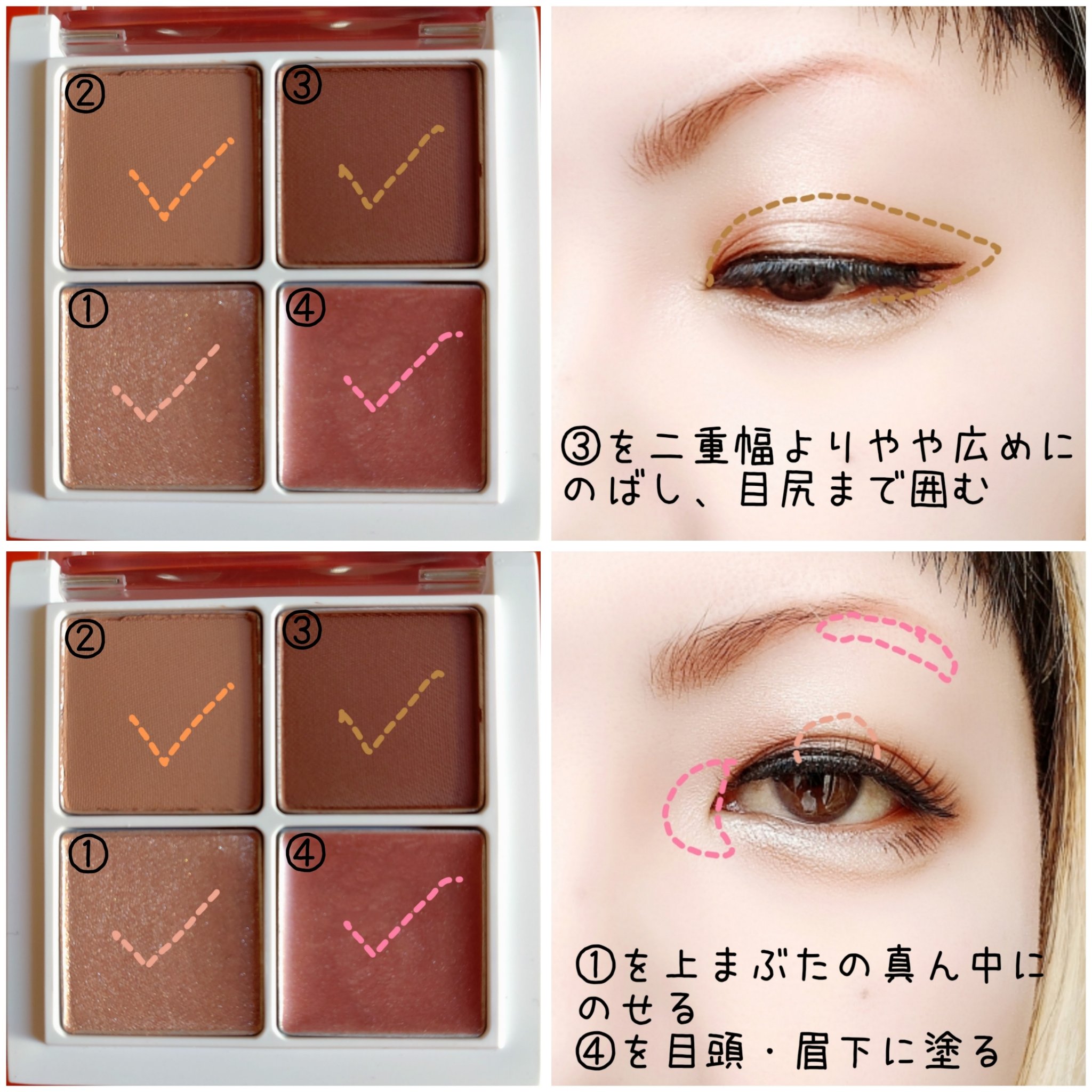 プチプラのクオリティじゃないっ!! 発売前からチェックしていたけれど、ここまで可愛いとは…😆 絶妙カラーで目もとのくすみを飛ばして*明るい印象に🩷 横割りグラデーションでメイクし、立体感をより出したかったので最後に1番左のカラーを上まぶたの真ん中と涙袋にのせています🙆 肌馴染みも良くて粉飛びも感じにくかったです💕 ブラウンの方も店頭に出てたら買おうかな💓