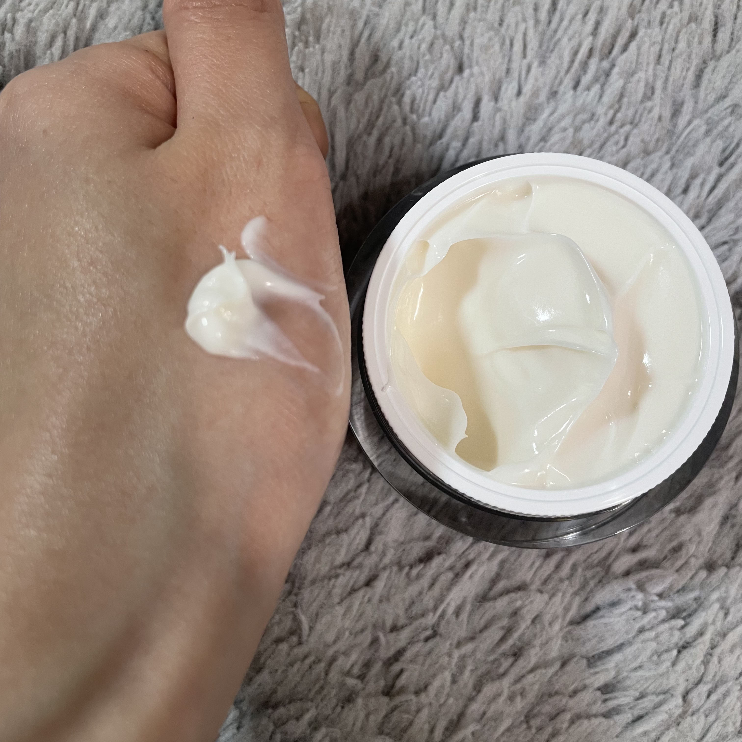 アルファアルブチンをたっぷり配合しておりまだらな肌やくすみに効果があるんだそう💭 セラムのテクスチャーは少しとろみがあってお肌にすーっと伸びて浸透してくれます。 クリームはみずみずしいテクスチャーでこちらもお肌になめらかにしっとり馴染みます。